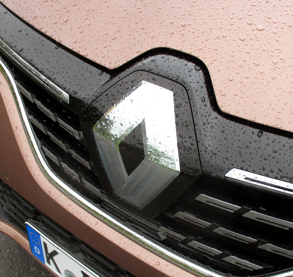 Blick auf die Frontpartie. Der Markenrhombus ragt vorn in die Motorhaube hinein.