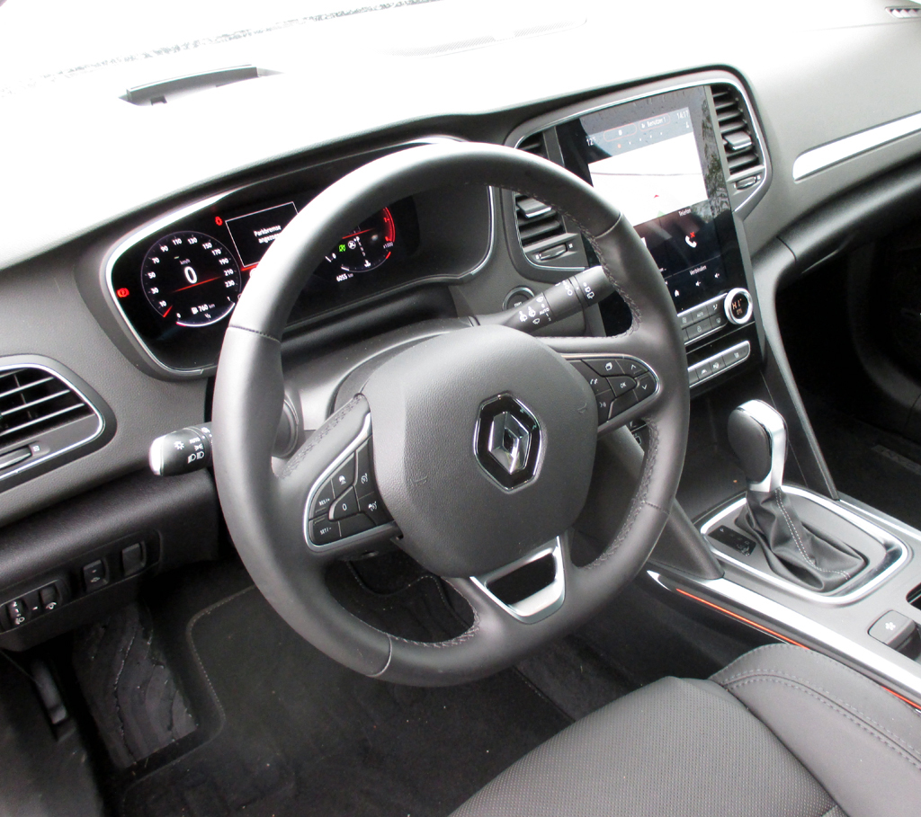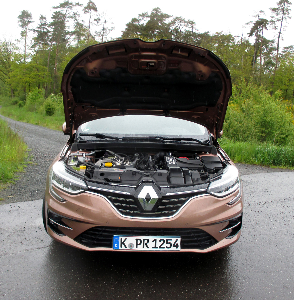 Kultivierter Vierzylinder. Schiebt beim Tritt aufs Gaspedal dank Aufladung etwas kraftvoller voran. Bringt in diesem Fall leer 1330 Kilo auf die Waage. Fahrwerk federt ausreichend komfortabel, ohne es mit der Sportlichkeit zu übertreiben. Sichere und agile Fahreigenschaften. Elektrische Servolenkung könnte noch direktere Rückmeldung geben. Scheibenbremsen, vorn innenbelüftet, packen standfest zu. Spurhalte-, Müdigkeitswarner und Verkehrszeichenerkennung mit Geschwindigkeitswarner tragen im Mégane in Intens-Ausführung bereits zusätzlich zum Standard-Insassenschutz bei.