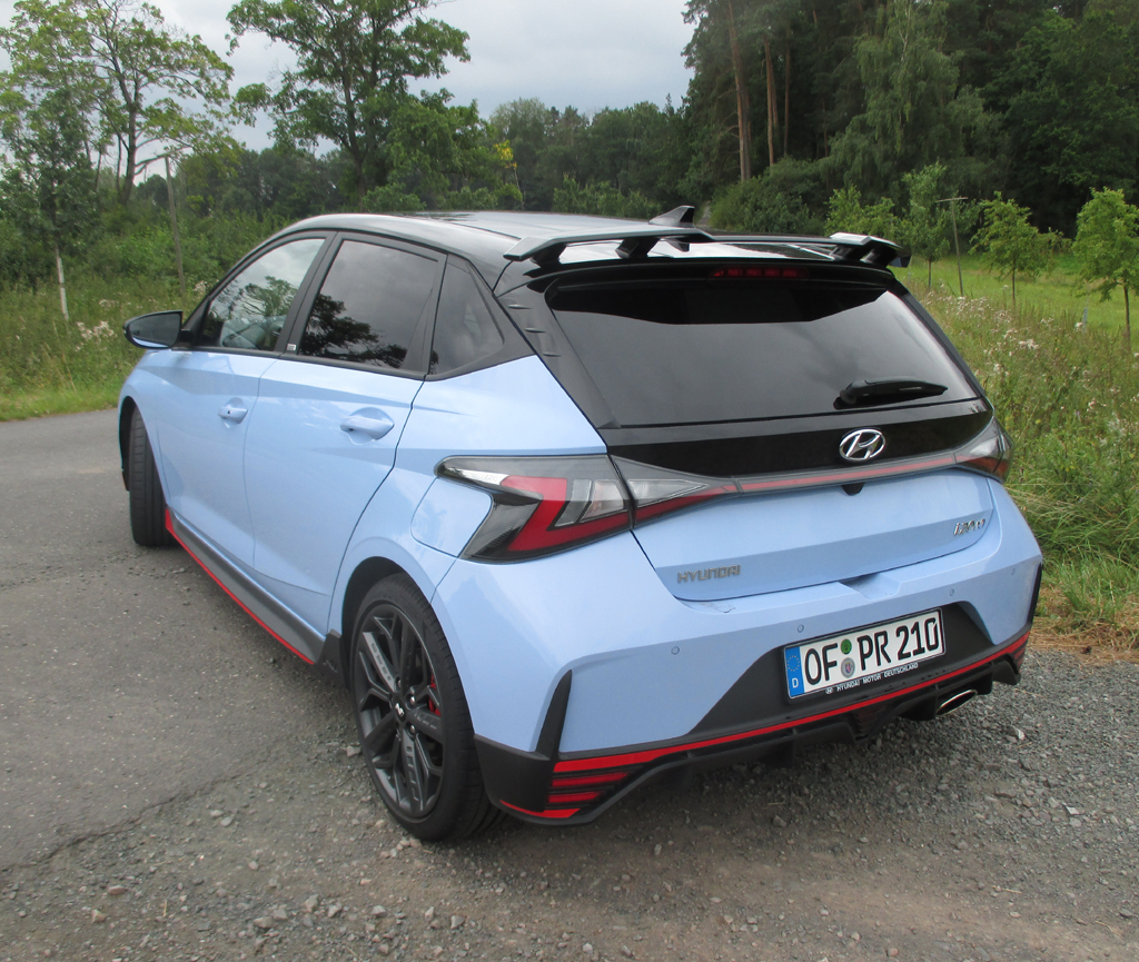 Fünftüriger Fünfsitzer. Seit Mitte 2021 bei uns auf dem Markt. Als N-Performance und kleinster Hyundai unter diesem Label außen wie innen mit sportlicherem Look. Sauber verarbeitet. Wertig anmutend. 4,07 Meter lang. 1,77/2,04 Meter breit. 1,44 Meter hoch. Radstand 2,58 Meter. Kofferraum 352 bis 1165 Liter. Leergewicht 1190-1220 Kilo. Vorn ordentlich Platz. Hinten beengter. Übersichtliches Cockpit. Bedienung fällt ziemlich leicht.