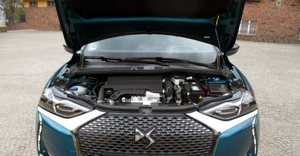 Vierzylinder-Turbodiesel. Abgasnorm Euro-6d. 1,5 Liter Hubraum. 96/130 kW/PS. Maximal 300 Newtonmeter Drehmoment bei 1750 Umdrehungen pro Minute. In 9,9 Sekunden aus dem Stand auf Tempo 100. 195 Stundenkilometer Spitze. Achtgang-Automatik. Frontantrieb. Laut DS kombinierter Verbrauch nach WLTP 4,8 Liter. Testverbrauch laut Bordcomputer am Ende nach zweiwöchigem Standardtest mit normalen Orts-, Landstraßen- und zügigeren Autobahnprofilen bei dennoch eher moderater und möglichst konstanter Fahrweise ohne größere Lastwechsel 5,6 Liter.