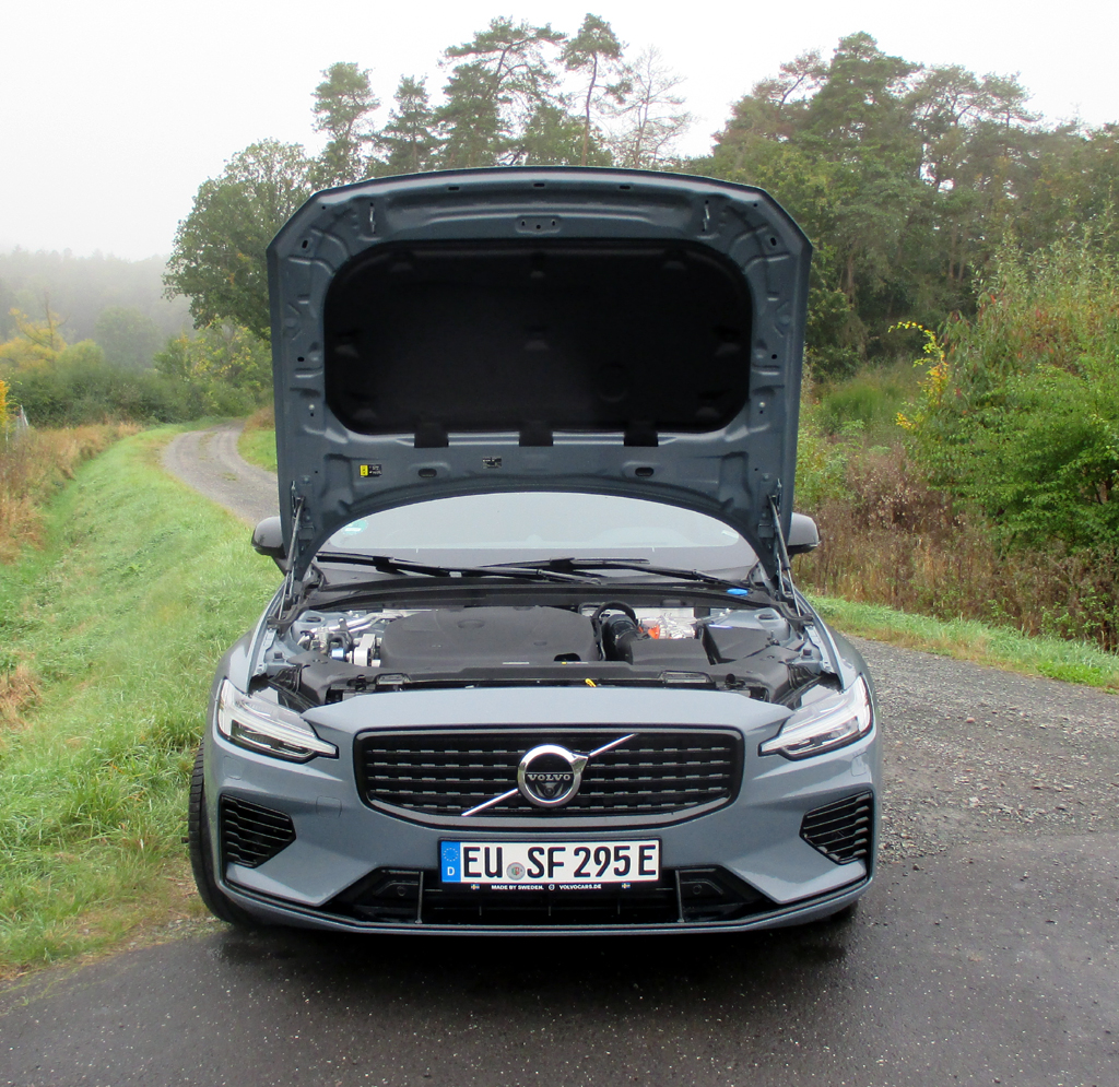 Vierzylinder-Turbobenziner, Abgasnorm Euro-6d, plus Elektromotor. Elektromotor treibt Hinterachse an. Verbrenner mit 2,0 Liter Hubraum, leistet 223/303, Elektromotor 65/87 kW/PS. Verbrenner maximal mit 400 Newtonmetern Drehmoment ab 2200 bis 4800 Touren, Elektromotor maximal mit 240 Newtonmetern. In 4,6 Sekunden aus dem Stand auf Tempo 100. 180 Stundenkilometer Spitze, elektrisch 125. Allradantrieb. Acht-Gang-Automatik. Rein elektrische Reichweite 57 Kilometer. Ladezeit Batterie je nach Anschluss drei, vier, acht Stunden. Kombinierter Verbrauch laut Volvo nach WLTP 1,8 Liter pro 100 Kilometer. Kohlendioxidausstoß 41 Gramm pro Kilometer. Verbrauch laut Bordcomputer am Ende des zweiwöchigen Standardtests nach normalen Orts-, Landstraßen- und zügigeren Autobahnfahrprofilen bei dennoch eher moderater und möglichst konstanter Fahrweise ohne häufigere Lastwechsel in verschiedenen Fahrmodi 3,2 Liter.