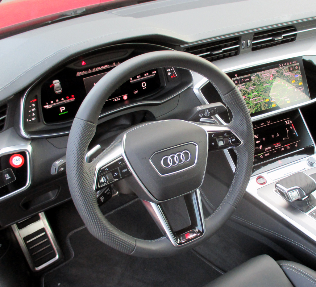 Der einfach aufgeladene Turbodiesel ist mit einem elektrisch angetriebenen Verdichter für noch sportlicheren Auftritt kombiniert. Beim Anfahren und Beschleunigen mit niedriger Last und geringer Drehzahl ist das Turboloch nicht mehr zu spüren, auch Ansprechverhalten und Durchzugsvermögen profitieren davon. Das Mildhybridsystem mit 48-Volt-Riemen-Starter-Generator und kleinem Akku im Fahrzeugboden gewinnt beim Bremsen Energie zurück, speist diese in die Batterie ein. Bis zu 40 Sekunden kann der S6 mit abgeschaltetem Motor segeln. Die Kraftverteilung beim Allrad liegt bei 40:60 Prozent, maximal sind 70 Prozent vorn, 85 Prozent hinten möglich. Bei der optional verbauten Dynamik-Allradlenkung, die direkte Rückmeldung von der Straße gibt, schlagen die Hinterräder über Tempo 60 in Fahrtrichtung ein, die Stabilität wird höher. Bei niedriger Geschwindigkeit sorgt sie mit entgegengesetztem Einschlag für mehr Agilität. Das straffere Serien-S-Sportfahrwerk macht seinem Namen alle Ehre, verfügt über Dämpferregelung, kann so bestmöglich zwischen Komfort und Dynamik variieren. Mit Auto, Komfort, Dynamik, Effizienz und Individual sind gleich fünf Fahrmodi wählbar. Die Scheibenbremsen sorgen für standfeste Verzögerung.