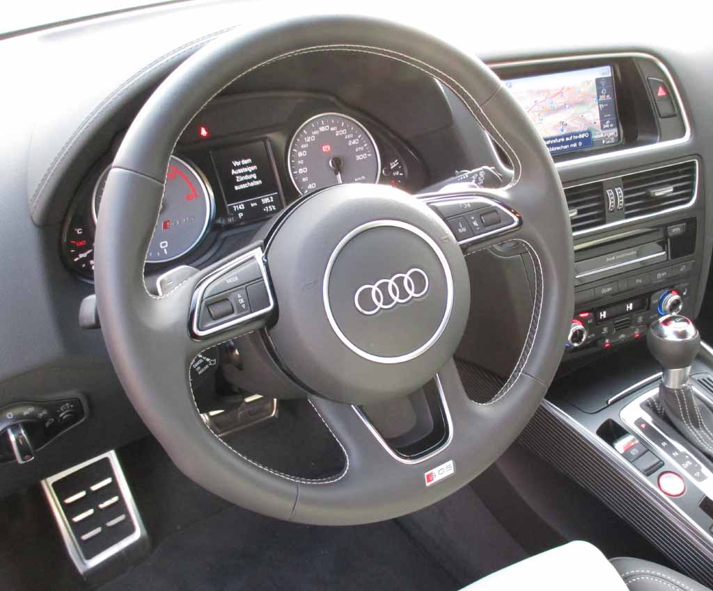 Bei dem getesteten Sechszylinder handelt es sich um einen 3,0-Liter-Turbodiesel mit 326 PS und wirklich durchzugsstarken 650 Newtonmetern schon früh ab unter 1500 Touren. Der gleich doppelt befeuerte Selbstzünder macht diesen Audi in der Spitze bis Tempo 250 schnell. Eine auch handschaltbare Achtstufen-Tiptronic mit Sportprogramm überträgt die Kraft auf die Räder. Wir haben die zumindest im Datenblatt in Verbindung mit der spritsparenden Stopp/Start-Funktion angegebenen 6,6 Liter Mixverbrauch nicht erreicht. Bei uns hat der Bordcomputer am Ende nach gemischten Stadt-, Landstraßen- und Autobahnfahrprofilen mit häufigeren Lastwechseln 7,8 Liter angezeigt.