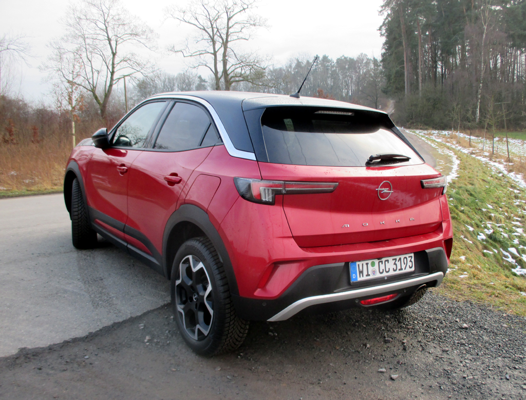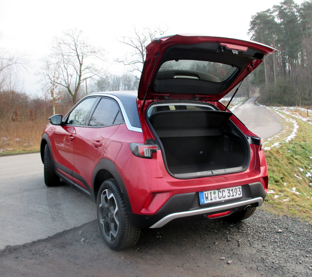 Fünftüriger Fünfsitzer. Zweite Generation. Komplett neu konstruiert. Baut auf modularer Plattform auf. Ist als erstes Fahrzeug nach neuer Opel-Designphilosophie vorgefahren. Überaus moderner Look. Mutiges Äußeres. Kurze Überhänge, breiter Stand. Optionale Zweifarblackierung. Sauber verarbeitet. Fürs Segment relativ wertig anmutend. Kommt kürzer, breiter und flacher daher. Ist 4,15 Meter lang, 1,79/1,98 Meter breit, 1,53 Meter hoch. Hat 2,55 Meter Radstand. Kofferraum fasst 350 bis 1105, bei der Elektrovariante bis 1060 Liter. Vorn ordentlich Platz. Im Fond etwas enger. Gute Übersicht. Volldigitales Cockpit mit bis zu zwölf Zoll großen Displays. Nur noch wenige Knöpfe für wichtigste Funktionen. Bedienung könnte insgesamt noch etwas weniger umständlich sein.