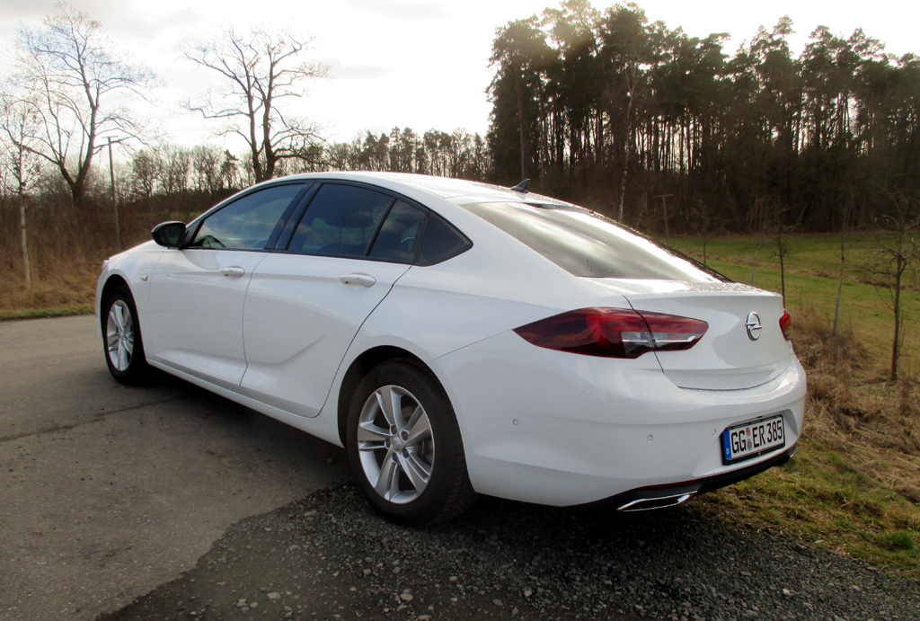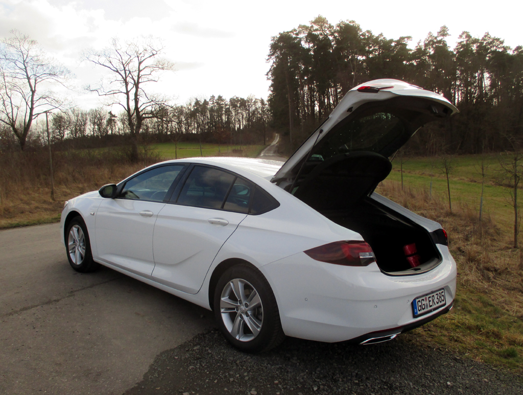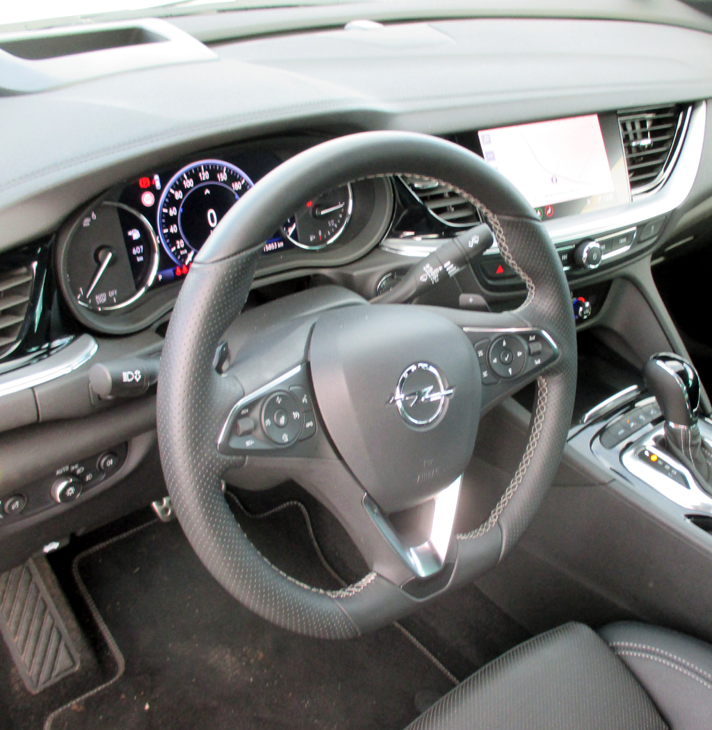 Viertüriger Fünfsitzer. Überaus sportlich-elegante, fließende Form. Weitgehend sauber verarbeitet. Wertig anmutend, zumal in höherer Ausstattung. 4,89 Meter lang, 1,94/2,09 Meter breit, 1,45 Meter hoch, Radstand 2,82 Meter, Kofferraum 490 bis 1450 Liter. Man sitzt ganz gut, genießt ordentliche Sicht. Selbst im Fond findet sich noch ordentlich Platz. Die Neugestaltung der Frontpartie lässt den Insignia im Verbund mit flacheren Leuchten visuell breiter wirken. Der Kühlergrill ist mit aktiv gesteuertem Lufteinlass versehen. Im recht übersichtlich gestalteten Cockpit ist die Bedienung rasch im Griff.