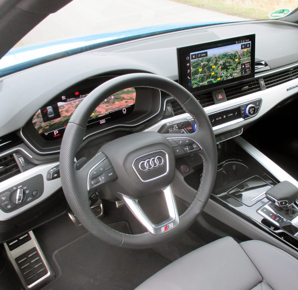 Die Ausstattung der S-Modelle ist generell etwas umfangreicher als die der normalen Serienbrüder, aber in der Regel auch teurer. So reicht die Liste der Sonderwünsche neben Dynamiklenkung (1000 Euro), S-Sportfahrwerk mit Dämpferreglung (1030 Euro), Ausstattungspaket Stadt (1120 Euro), Ausstattungspaket Tour (1300 Euro) und Quattro mit Sportdifferenzial (1350 Euro) in diesem Fall etwa noch vom Soundsystem (320 Euro) über Matrix-LED-Scheinwerfer (600 Euro), Virtual Cockpit (600 Euro), Drei-Zonen-Klimaautomatik (695 Euro), Leder (900 Euro) und Sportsitze vorn (925 Euro) und weiteren bis hin zu den 19-Zoll-Leichtmetallrädern mit 255er-Reifen (1200 Euro), was den Endpreis des Testwagens zum Schluss um rund 14 250 auf 81 055 Euro erhöht hat.