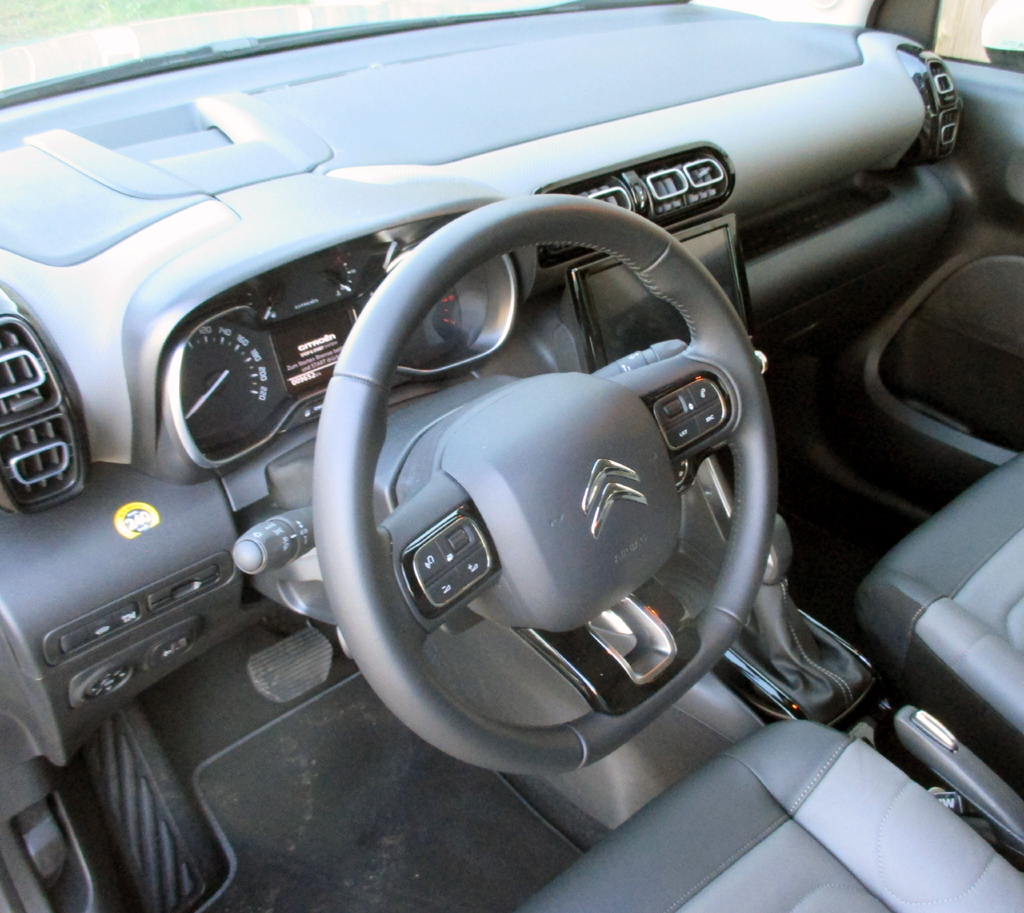 Der Turbo bringt diesen leer bis zu 1487 Kilo schweren Vierzylinder druckvoller auf Trab. Das Fahrwerk hat, typisch für die Marke, einen eher kommoden Eindruck hinterlassen. Obwohl Details wie die Beplankung über den breiteren Kotflügel den robusteren SUV-Charakter unterstreichen, hat der Aircross nur eine Traktionskontrolle mit erweiterter Funktion statt eines schwereren Allrads an Bord. Dass der Schwerpunkt liegt höher, macht sich insbesondere beim flotteren Durcheilen von Kurven bemerkbar. Die Servolenkung könnte direktere Rückmeldung geben. Die Scheibenbremsen verzögern standfest. Unter anderem Müdigkeits-, Verkehrszeichenerkennung, Spurassistenz und Tempomat samt Begrenzer tragen bereits im Basis-C3-Aircross zum Standard-Insassenschutz bei.