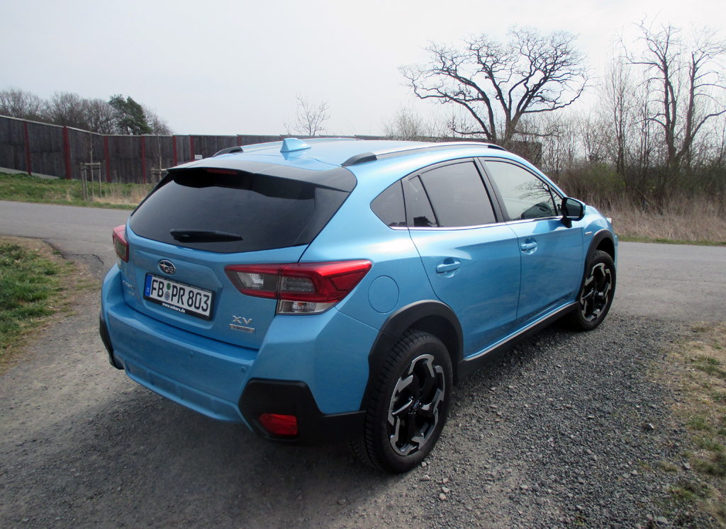 Heck-/Seitenansicht des fünftürigen Fünfsitzers. So sieht der XV von der Seite aus.