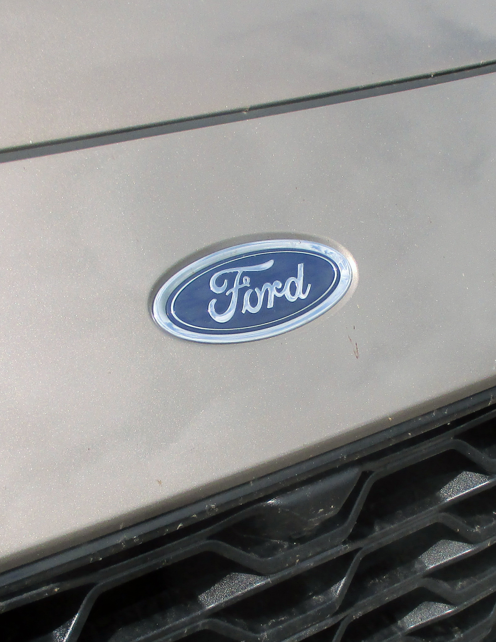 Blick auf die Frontpartie mit dem Markenlogo vorn über dem Kühlergrill.