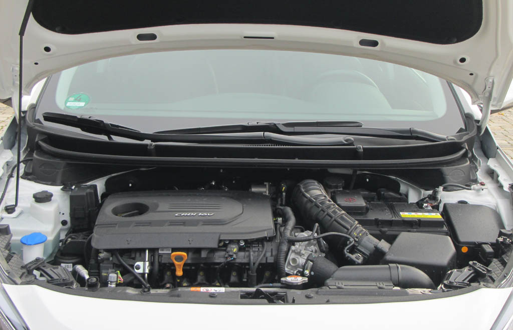 Bei dem getesteten Vierzylinder handelt es sich um einen recht kultivierten 1,6-Liter mit 136 PS und durchzugsstärkeren 300 Newtonmetern schon früh ab deutlich unter 2000 Touren. Der Selbstzünder mit spritsparenderer Blue-Drive- samt Stopp/Start-Technologie macht diesen Hyundai in der Spitze bis Tempo 197 schnell. In Verbindung mit der gut abgestuften Siebengang-Doppelkuplungsbox für 1750 Euro geben die Koreaner den Mixverbrauch mit nur 4,2 Litern an, zumindest im Datenblatt.