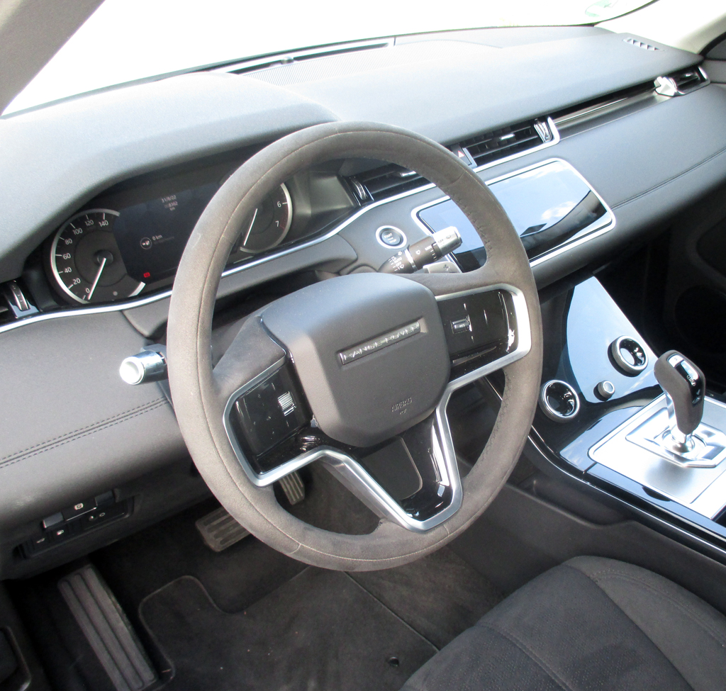Der leer 2157 Kilo schwere Plug-in, der Lasten immerhin noch bis 1,6 Tonnen ziehen kann, ist die jüngste Evoque-Version. 309 PS Systemleistung für ein kompaktes SUV-Modell sind ein Wort. Im Hybridmodus geht es durchaus flott zur Sache. Auf der Autobahn lässt der Vorwärtsdrang aber etwas nach. Verbrenner und Elektromotor harmonieren so ganz gut. Erfreulich ist, dass der Dreizylinder anders als sonst kaum vibriert. Wird der Elektromodus, sinnvoll in der Stadt, gewählt, setzt der Verbrenner aus, bis die Batterie leer ist; der Evoque zeigt dann einen sanfteren Charakter. Das Beschleunigen an Steigungen und das Überholen auf der Landstraße gestalten sich jedoch etwas zäh. Es gibt ein System, das die Fahrbedingungen anhand verschiedener Fahrzeugsensoren überwacht und die Fahrzeugeinstellungen automatisch anpasst. Dazu ein weiteres zum konstanten Einhalten von niedrigeren Geschwindigkeiten bis Tempo 30 selbst unter schwierigeren Bedingungen. Auch im Gelände kann das Kompaktmodell durchaus punkten. Der zumindest im Datenblatt so angegebene Verbrauch dürfte, wie auch unser Test zeigt, in der Praxis allerdings kaum zu schaffen sein.
