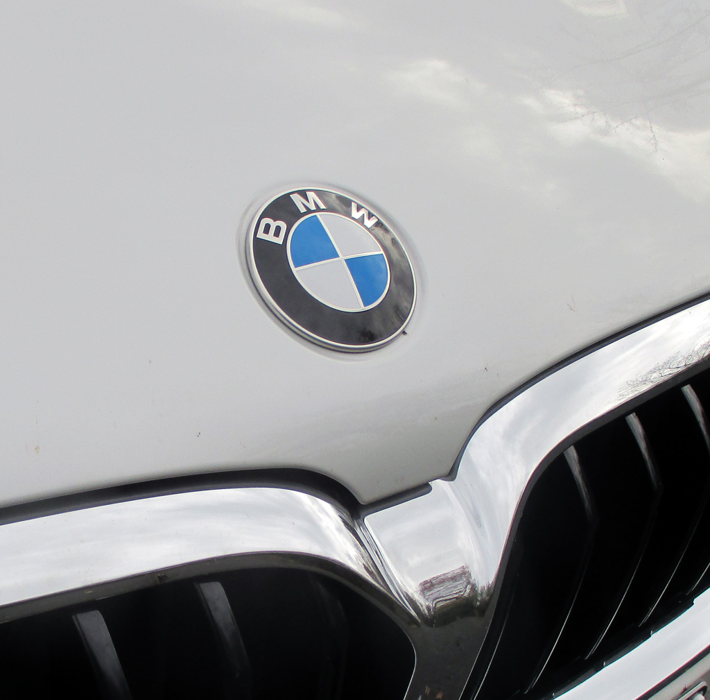 Blick auf die Front mit Markenlogo vorn über dem Doppelnieren-Kühlergrill.