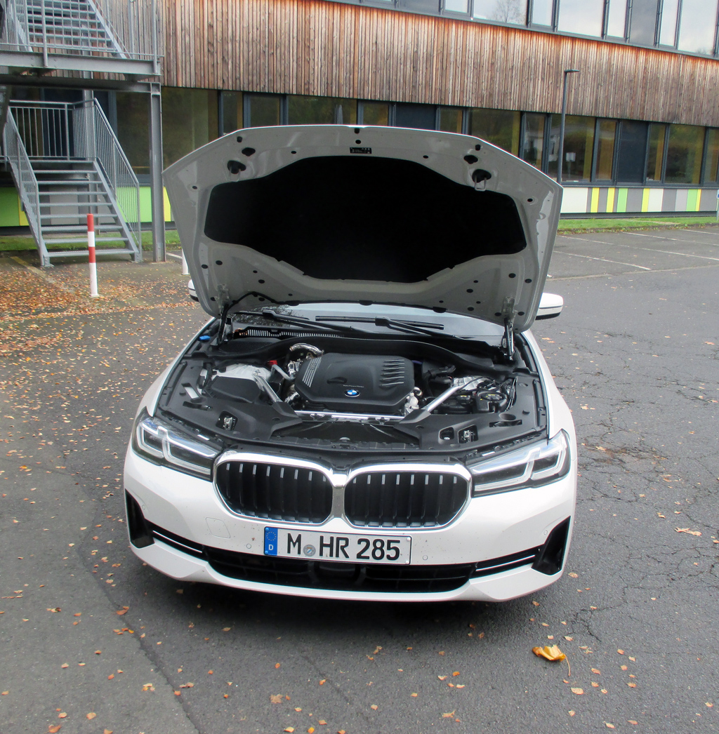 Der kraftvolle Motor läuft kultiviert. Die bei BMW Steptronic genannte, handschaltbare Automatik wechselt schnell, sanft und präzise die acht Gänge. Die Scheibenbremsen packen standfest zu. Mit der leer 1835 Kilo schweren Limousine kann man genauso komfortabel wie sportlich oder sparsam unterwegs sein; die entsprechende Fahrmodus-Einstellung macht’s möglich. Als Mildhybrid spricht auch der Sechszylinder spontaner und komfortabler an, ist effizienter, indem der 48-Volt-Startergenerator mit elf PS den Verbrenner in bestimmten Situationen wie ein Elektromotor unterstützt, etwa beim „Segeln“ durch Abschalten des Motors, bei der Rückgewinnung von Bremsenergie oder beim Beschleunigen, so dass sich Verbrauch und Schadausstoß reduzieren, während gleichzeitig ein Dynamikvorteil durch den Zusatzantrieb entsteht. In der Grundabstimmung ist das im Fall des Testwagens als Option verbaute Adaptivfahrwerk (1200 Euro) schon etwas straffer, federt aber immer noch kommod genug. Die diesem 530d ebenfalls als Extra zugeordnete Integral-Aktivlenkung (1250 Euro) gibt direkte Rückmeldung. Aufmerksamkeitsassistenz, Auffahr- und Personenwarner jeweils mit City-Bremsfunktion tragen in jeder Version schon zum höheren Standard-Insassenschutz bei.