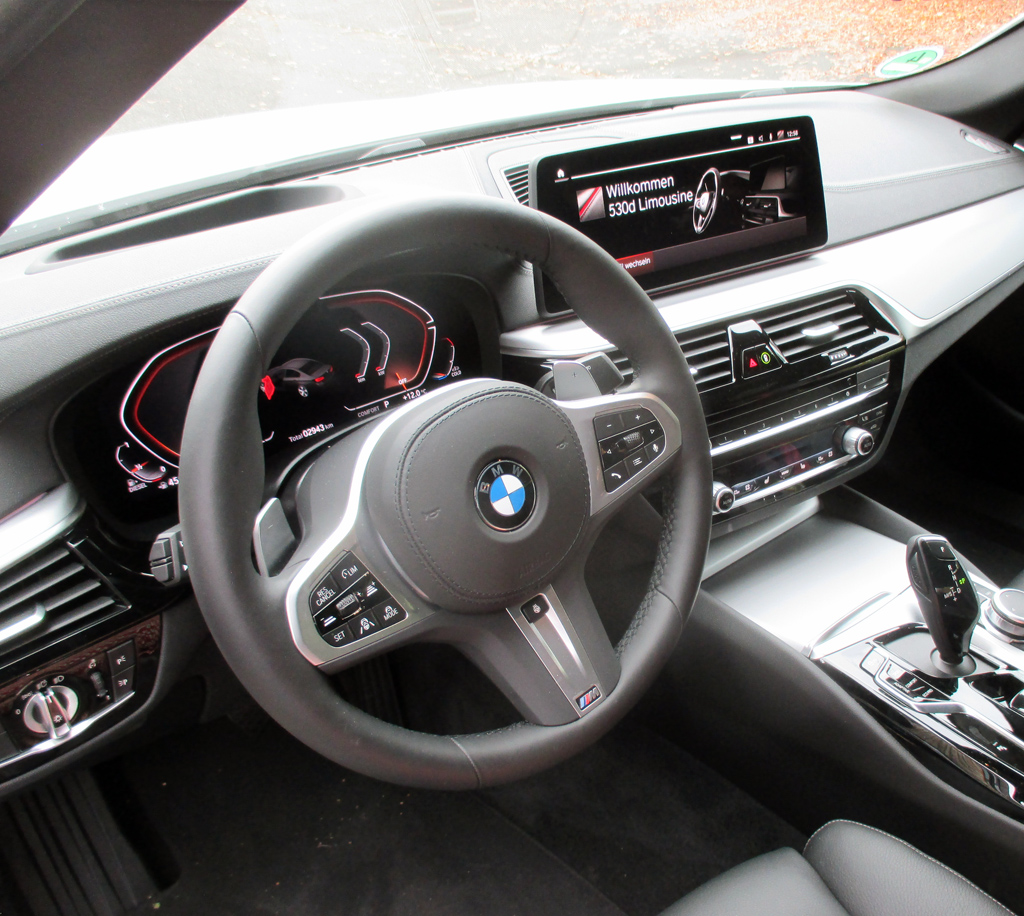 Der gewohnt sauber verarbeitete 5er – als Limousine 4,96 Meter lang, 1,86/2,12 Meter breit, 1,47 Meter hoch, Radstand 2,97 Meter, Kofferraum 530 Liter – fährt äußerlich präsenter und sportlicher vor. Das Ambiente im selbst im Fond noch geräumigen Inneren mutet feiner und wertiger an. Man sitzt gut, genießt ordentliche Rundumsicht, hat im sportlich-funktionellen Cockpit alles gut im Blick. Die Handhabung ist rasch im Griff. Die Neuerungen bei den Fahrassistenzen, der Bedienung und der Vernetzung haben auch die Limousine auf den neuesten Stand gebracht.