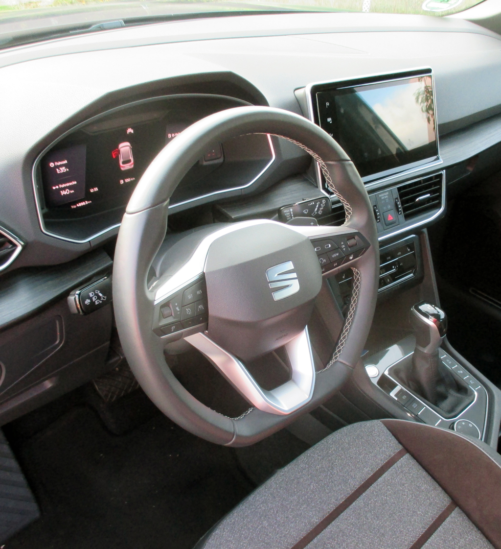 Der Tarraco, sauber verarbeitet, für sein Segment recht wertig anmutend, 4,73 Meter lang, 2,11/1,83 Meter breit, 1,67 Meter hoch, Radstand 2,79 Meter, Kofferraum als Fünfsitzer erweiterbare 760 Liter, baut auf dem modularen Querbaukasten des Konzerns auf, ist neben dem VW Tiguan Allspace eng auch mit Skodas Kodiaq verwandt, kommt gefällig und überaus geräumig daher. Man sitzt höher. Die Rundumsicht ist gut. Die Eingewöhnung in die Digitalität des insgesamt sehr übersichtlichen Cockpits mit zwei acht und über zehn Zoll großen Displays fällt leicht.