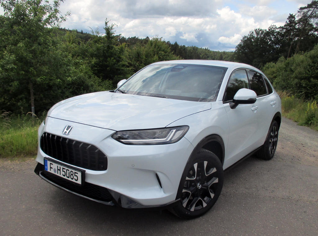 Beim etwas technisch klingenden Namen könnten die Japaner ruhig etwas emotionaler sein: Wir haben den markenintern zwischen dem kleineren HR-V und dem größeren CR-V positionierten ZR-V jetzt als einzig verfügbaren Vollhybrid e:HEV mit Frontantrieb und Automatik in Advance-Ausführung zur Probe gefahren. Auto: Fünftüriger Fünfsitzer. Baut auf elfter Civic-Plattform auf. Segment: Kompakt-SUV. Produktion: China. Eingeführt: 2023. Konkurrenten: Aus deutscher Sicht Ford Kuga, Opel Crossland, VW Tiguan. Länge: 4,56 Meter. Breite: 2,09 Meter (mit Außenspiegel). Höhe: 1,61 Meter. Radstand: 2,65 Meter. Leergewicht: 1710 Kilo. Design: Für japanische Verhältnisse recht gefällig. Verarbeitung: Solide. Anmutung: Mit Advance-Ausstattung wertiger. Innenraum: Ziemlich geräumig, selbst im Fond. Gepäckabteil: 370 bis 1291 Liter. Cockpit: Wirkt etwas unharmonisch-zerklüftet. Bedienung: Trotzdem intuitiv und deshalb auch relativ schnell im Griff. Antrieb*: Verbrenner und Elektro. Benziner mit 143, Elektro mit 184 PS. Wie beim vorher getesteten Jazz: Akku speichert beim Bremsen zurückgewonnene Energie samt der überschüssigen des Benziners, stellt sie dem Elektroabtrieb zur Verfügung. Muss es mehr sein, springt Benziner an und erzeugt zusätzlich Strom. Fahren: Ebenfalls wie beim Jazz: Ziemlich druckvoll dank Doppelherz-Kraft. Schönes flottes Fahrgefühl. Vier Fahrmodi. Normal, Eco(n), Sport, Snow. Drehmoment wird stufenlos geregelt wie der an den Elektromotor geleitete Strom. Kein CVT-Getriebe, sondern automatische Kraftübertragung, die weder manuelle Kupplungsbetätigung noch Schaltvorgänge braucht. Übersetzung ist wie in Elektrofahrzeugen eine feste. 18 Zentimeter Bodenfreiheit. Leider nur Lasten bis 750 Kilo möglich. Fahrwerk: Insgesamt ausgewogen-gelungene Abstimmung. Ausreichend komfortabel. Servolenkung: Elektrisch. Etwas künstlich. Könnte direktere Rückmeldung geben. Bremsen: Scheiben, vorn innenbelüftet. Verzögern standfest. Sicherheit: Honda Sensing als Kombination aus Kameras, Radar und Sensoren. Standard schon im Basispaket. Überwacht Umfeld des Wagens. Unterstützt vorausschauend beim Vermeiden von Gefahren. Ausstattung: Elegance, Sport, Advance. In höchster Stufe etwa LED-Scheinwerfer, LED-Rückleuchten, Klimaautomatik, 12,2-Zoll-Digitalinstrumentierung, Multimedia, 9-Zoll-Touchscreen, Navigation, Headup-Display, Panorama-Glasschiebe-/Hubdach, Kunstleder-/Lederpolster und 18-Zoll-Leichtmetalllräder mit 225er-Reifen. Extras: Etwa Metallic/Pearl-Lackierungen (800 Euro), Robustpaket (1750 Euro), Aeropaket (2450 Euro) 19-Zoll-Leichtmetall-Komplettradsatz (2800 Euro). Baureihe: Fängt preislich bei 42 900 Euro an. Einziger Antrieb ist der getestete Hybrid. Fazit: Mit knapp über 47 000 Euro in der getesteten Version nicht ganz billig. Recht wertig. Gute Sicherheits- und Komfortausstattung. Bisweilen Assistenzsysteme, die etwas nerven.