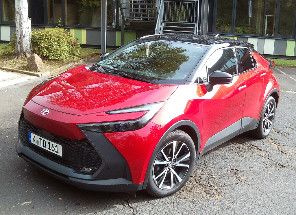 Die Abkürzung steht für C(oupé)H(igh)R(ider): Wir haben das kleine Crossover-SUV-Modell der Japaner, markenintern zwischen Yaris und Corolla positioniert, jetzt als Hybrid in Team-D-Ausführung zur Probe gefahren. Auto: Fünftüriger Fünfsitzer. Segment: Kleinwagen. Produktion: Eingeführt: 2016 erste Generation. 2024 zweite Generation. Konkurrenten: Aus deutscher Sicht Ford Puma, VW Taigo. Länge: 4,36 Meter lang. Breite: 1,83 Meter. Höhe: 1,56 Meter. Radstand: 2,64 Meter. Leergewicht: 1540 bis 1595 Kilo. Design: Gefälliger. Etwas weniger avantgardistischer und polarisierender. Trotzdem bleibt das Heck markant. Verarbeitung: Solide. Anmutung: Standesgemäß. Innenraum: Vorn ordentlich Platz. Im Fond deutlich beengter. Rundumsicht könnte besser sein. Gepäckabteil: Etwas unpraktisch. Und relativ klein mit 430 bis 1140 Litern. Cockpit: Digital. Aber auch noch mit analogen Tasten versehen. Bedienung: Nach kurzer Eingewöhnung rasch im Griff. Antrieb*: Lebhafter Vierzylinder-Turbobenziner plus Elektromotor vorn. Zweifellos effiziente, weil bewährte Hybridtechnologie. Kombiniert mit bequemer stufenloser Automatik. Fahren: Hier beim Tritt aufs Gaspedal dank der stärkeren Leistung durchaus etwas sportlicher. Verbrenner immer noch mit höheren Drehzahlen, aber nicht ganz so störend-dröhnend wie beim schwächeren1,8-Liter-Hybrid-Pendant unterwegs. Fahrwerk: Grundauslegung kommt bei allem jetzt sportlich-flotteren Vorwärtskommen keinesfalls unkomfortabel rüber. Lenkung: Gibt ausreichende Rückmeldung von der Straße. Bremsen: Packen standfest zu. Ausstattungen: Fünf davon gibt es mit Team D - steht für Team Deutschland - als mittlerer davon. Zwei GR-Sport-Lines kommen noch hinzu. Zumindest für die C-HR-Klasse sind Serien-, Sicherheits- und Komfortpaket mit wichtigsten elektronischen Assistenzen (www.toyota.de) umfangreicher bestückt. Baureihe: Sie startet bei 34 990, geht hoch bis 49 990 Euro. Sonst stehen noch ein weiterer Hybrid mit 140 und ein Plug-in mit 223 PS zur Wahl. Fazit: Der Preis, mit Sonderausstattungen hier sogar ab fast 42 000 Euro, ist wahrlich kein Schnäppchen. Beim Antrieb handelt es sich dafür aber doch um einen vergleichsweise kräftigen. Der einstige Rebell legt zudem ein sicheres Fahrverhalten an den Tag. Und die Ausstattung kann sich sehen lassen.