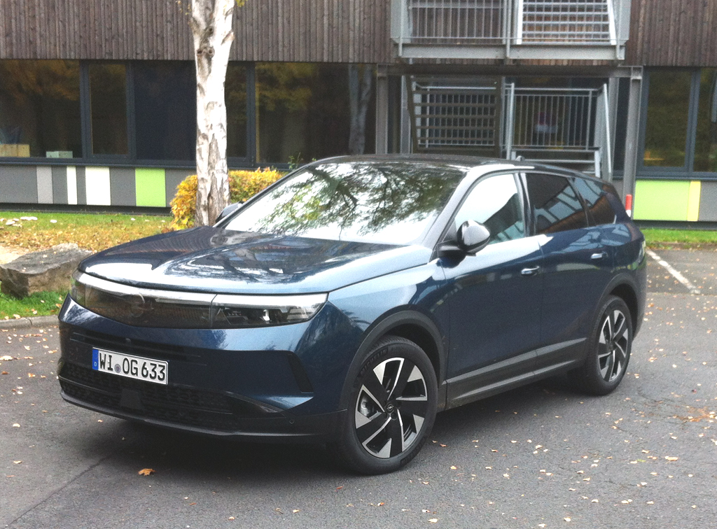 Es ist das etwas größere und das noch etwas geräumigere Kompakt-SUV-Modell von Opel: Wir haben den Antara-Nachfolger Grandland jetzt als Hybrid in GS-Ausführung zur Probe gefahren. Auto: Fünftüriger Fünfsitzer. Segment: Mittelklasse-SUV. Produktion: Eisenach. Eingeführt: 2017 erste Generation. Bis zum Facelift 2021 als Grandland X. 2024 zweite Generation. Konkurrenten: Aus deutscher Sicht Ford Kuga, VW Tiguan. Sonst Citroen C5 Aircross, Hyundai Tucson, Kia Sportage sowie auf Stellantis-Konzernebene DS7, Peugeot 3008. Länge: 4,65 Meter. Immerhin 17 Zentimeter mehr als beim Vorgänger. Breite: 1,90 Meter. Höhe: 1,66 Meter. Radstand: 2,78/2,79 Meter. Leergewicht: 1675 Kilo. Design: Zeigt Mut. Ähnlich wie beim zuvor getesteten Mokka genauso kantig wie futuristisch mit schwarzem Designmodul vorn als mittlerweile typischem Vizor-Markengesicht. Verarbeitung: Gut. Anmutung: Als GS noch etwas wertiger. Innenraum: Genügend Platz für bis zu fünf Erwachsene. Gepäckabteil: 550 bis 1641 Liter. Hohe Ladekante. Cockpit: Aufgeräumter Arbeitsplatz. Modern. Digital. Zwei Widescreen-Displays. Bedienung: Ziemlich schnell im Griff. Antrieb*: Hybrid aus 136-PS-Turbobenziner und 21-PS-Elektromotor. Im System 145 PS. Kombiniert mit elektrischer Sechs-Gang-Automatik mit Doppelkupplung. 48-Volt-Bordnetz. Fahren: Recht munter. Motor(en) kommen mit dem Kompaktmodell insgesamt ganz gut zurecht. Der Dreizylinder könnte jedoch etwas kultivierter laufen. Fahrwerk: Eher straffe Grundabstimmung. SUV-typische Karosseriebewegungen setzen ausgeprägt sportlicher Fahrweise doch etwas engere Grenzen. Lenkung: Ausreichend direkt. Bremsen: Verzögern standfest. Wiederum ähnlich wie beim zuvor getesteten Mokka indes mit mäßigem Pedalgefühl. Räder: 19-Zoll-Leichtmetall mit 235er-Reifen. Ausstattung: Drei Stufen. Edition, GS, Ultimate. Für die Mittelklasse umfangreicheres Serien-, Sicherheits- und Komfortpaket mit wichtigsten Elektronikhilfen (www.opel.de). Baureihe: Fängt bei 37 990 Euro an, geht hoch bis 59 990. Sonst noch Plug-in-Hybrid ab 41 550 Euro mit 195 PS sowie drei Elektrovarianten mit 213, 325 und 232 PS, der mittlere davon als Allrad. Fazit: Gefällig. Gut ausgestattet. Grandland rundet SUV-Palette der Rüsselsheimer von Abmessungen und vom Preis her noch oberhalb vom neuen Frontera ab.