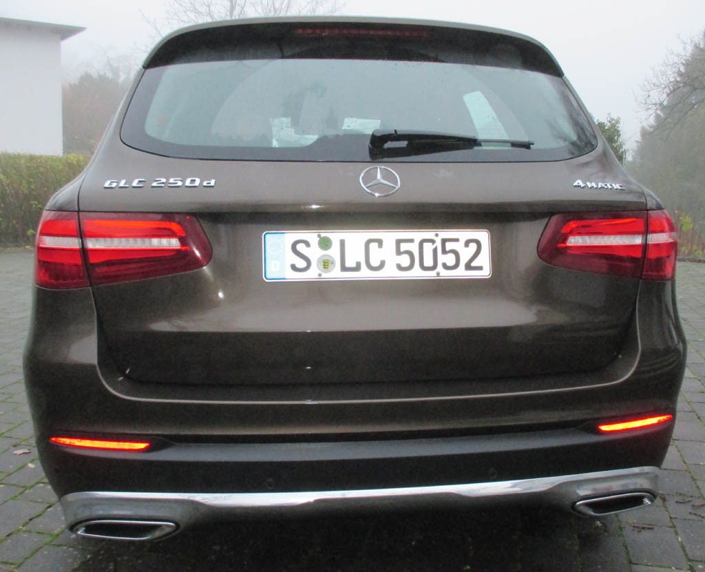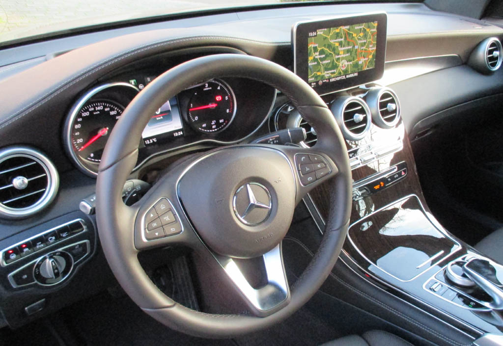 Der schon äußerlich schnittiger und abgerundeter gezeichnete Nachfolger des kantigen GLK ist seit September auf dem Markt, kommt geräumig auf 4,65 Metern Länge sauber verarbeitet daher, mutet wertig an. Man sitzt höher. Bei 2,87 Metern Radstand ist selbst im Fond noch ordentlich Platz vorhanden. Das Gepäckabteil fasst stattliche 550 bis 1600 Liter bei geteilt umklappbaren Rücksitzlehnen. Die Bedienung ist nach kurzer Eingewöhnung rasch im Griff. Bloß die Sicht nach hinten bleibt nach wie vor etwas eingeschränkt.