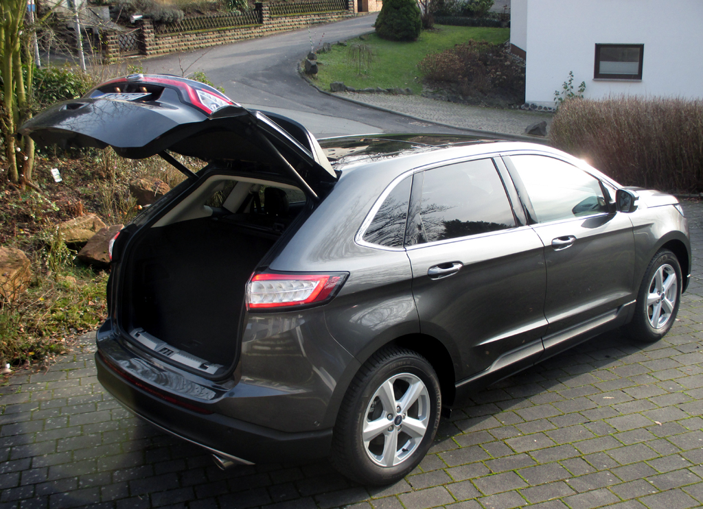 Der Turbodiesel schiebt den leer 1912 Kilo schweren Edge, der Lasten bis 2,2 Tonnen ziehen kann, insgesamt flott voran. Wirkt er zunächst etwas schwerfällig, geht er, einmal auf Touren, leichtfüßiger zu Werke, vermittelt ein erhabenes Fahrgefühl mit kaum Geräuschkulisse innen. Der Allrad ist mit permanent geregelter Drehmomentverteilung kombiniert. Das Fahrwerk verbindet gelungen Sportlichkeit und Komfort miteinander. Die in diesem Fall verbaute Adaptivlenkung gibt ausreichend Rückmeldung von der Straße. Die Scheibenbremsen packen standfest zu. Fahrspur-, Fahrspurhaltehilfe, Müdigkeits-, Distanz-, Auffahrwarner, aktive Notbremsassistenz und Verkehrszeichenerkennung tragen bereits zum Standard-Insassenschutz bei.