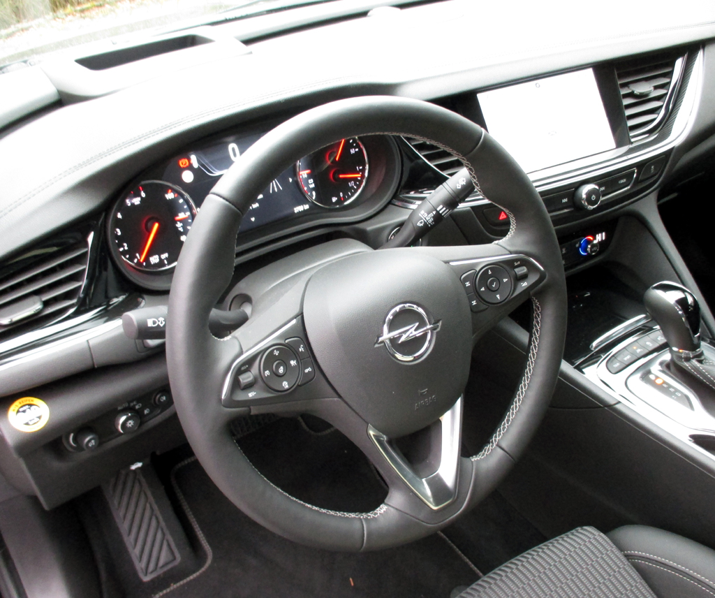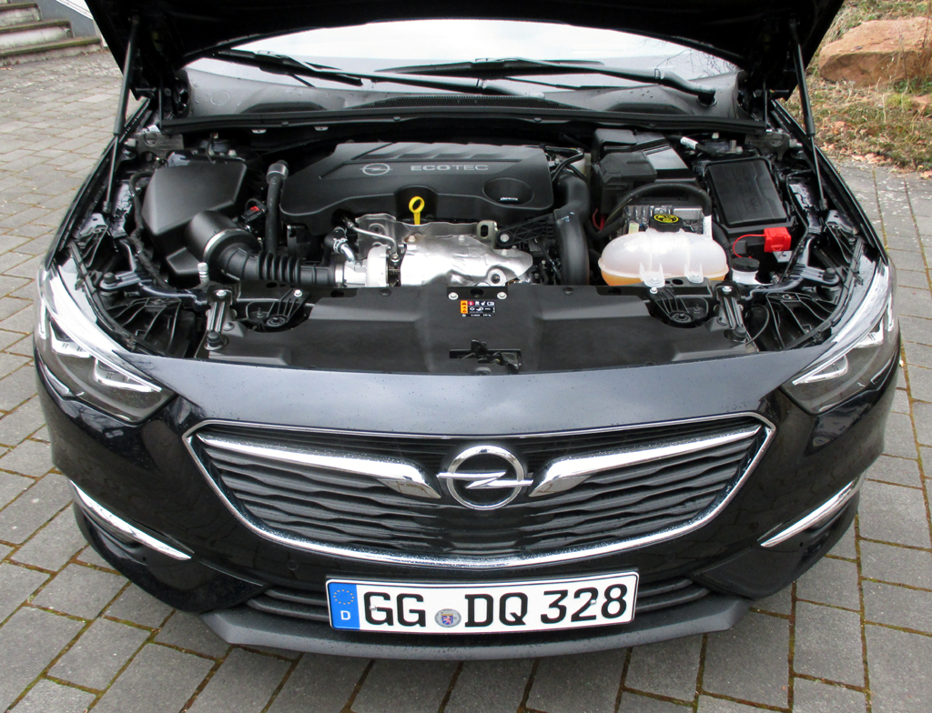 Bei dem getesteten Vierzylinder handelt es sich um einen 2,0-Liter mit 170 PS und durchzugsstarken 400 Newtonmetern, der in Summe ruhig noch etwas kultivierter laufen könnte. Der Selbstzünder macht diesen Opel in der Spitze bis 223 Stundenkilometer schnell. Eine gut abgestufte Achtgang-Automatik überträgt die Kraft auf die Räder. Die in Verbindung mit der Stopp/Start-Spritsparautomatik zumindest im Datenblatt so angegebenen 5,5 Liter Mixverbrauch haben wir nicht erreicht. Bei uns hat der Bordcomputer am Ende im normalen, eher moderaten Fahrbetrieb nach wechselnden Fahrprofilen trotzdem für einen Wagen dieser Größe noch akzeptable 6,2 Liter angezeigt. Die Effizienzklasse B ist so schon ein Beleg für relativ niedrige Schadstoffwerte, die sich mit Umstellung auf die neue Abgasnorm demnächst noch weiter verbessern werden.