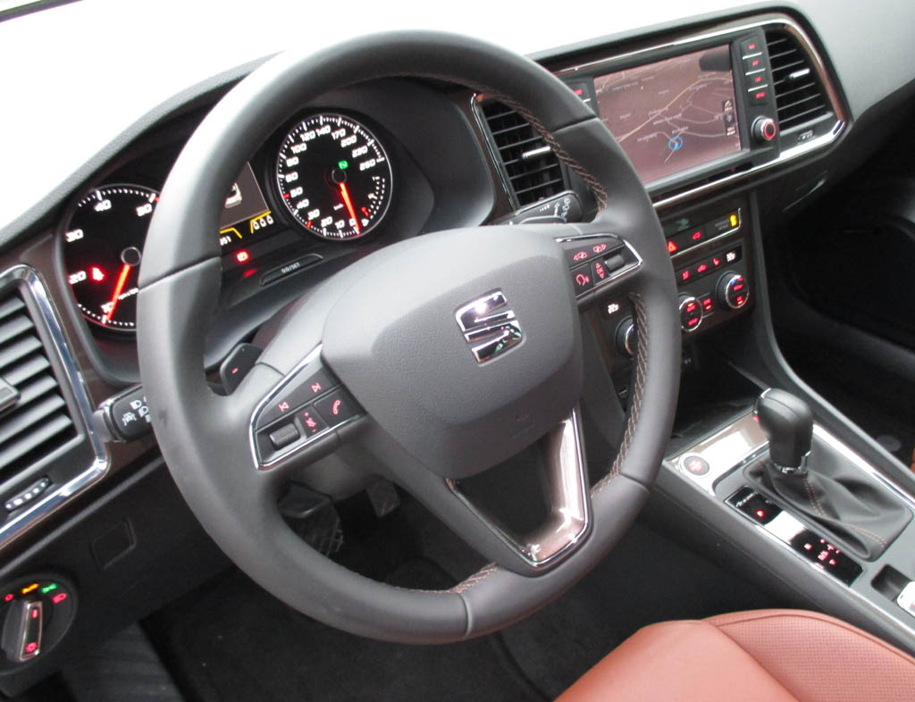 Bei dem getesteten Vierzylinder handelt es sich um einen kultivierten 2,0-Liter mit 190 PS und kräftigen 400 Newtonmetern. Der Selbstzünder macht diesen Seat bis 212 Stundenkilometer schnell. Ein sehr gut abgestuftes Siebengang-Doppelkupplungsgetriebe überträgt die Kraft. Die in Verbindung mit der Stopp/Start-Spritsparautomatik angegebenen 5,3 Liter Mixverbrauch haben wir leider nicht erreicht. Im Praxistest bei uns hat der Bordcomputer am Ende nach meist Stadt- und zügigeren Autobahnfahrprofilen 6,7 Liter angezeigt.
