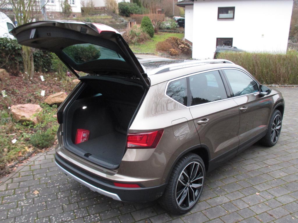 Der bei der Schwestermarke Skoda in Tschechien vom Band laufende und nach einer Stadt in der zentralspanischen Provinz Saragossa benannte Ateca ist erst seit Mitte 2016 auf dem Markt. Er kommt auf 4,36 Metern Länge sauber verarbeitet daher, mutet für die untere Mittelklasse standesgemäß an. Platz ist bei 2,63 Metern Radstand selbst im Fond noch ordentlich vorhanden. Das Gepäckabteil mit doppeltem Ladeboden fasst in der Allradversion 485, sonst 510 bis 1604 Liter, wobei die Lehnen der Rücksitz geteilt umklappbar sind. Die Bedienung im ziemlich übersichtlichen Cockpit ist rasch im Griff.