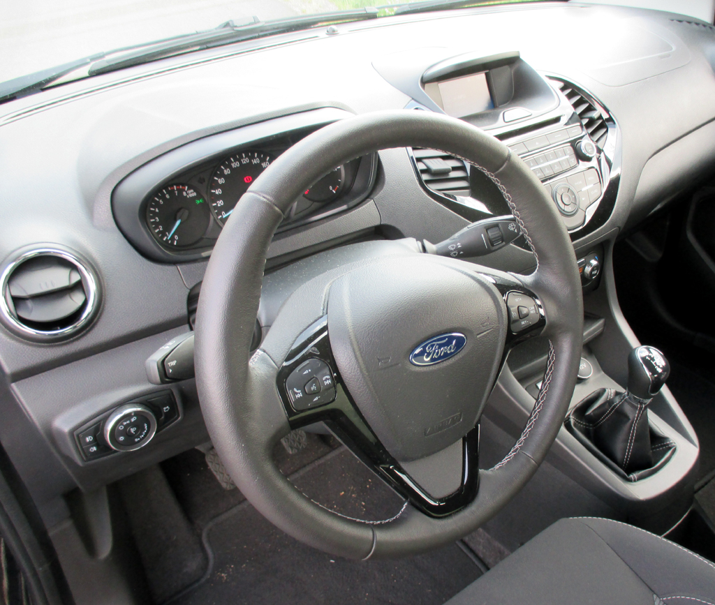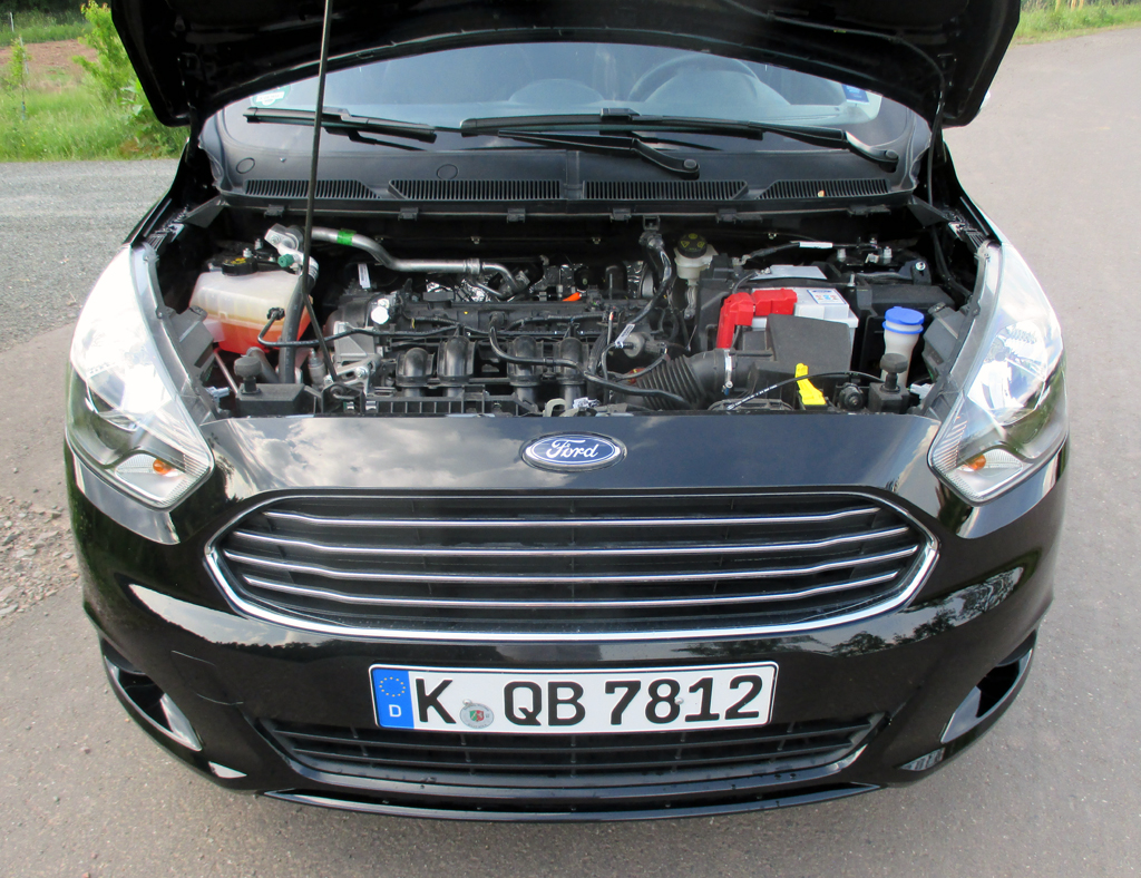 Bei dem Saugbenziner, der uns zur Verfügung stand, handelt es sich um einen 1,2-Liter mit 85 PS und im Durchzug nicht ganz so starken 112 Newtonmetern dazu erst ab 4000 Touren. Der Vierzylinder macht diesen Ford in der Spitze bis Tempo 169 schnell. Ein leider nur fünfgängiges Schaltgetriebe überträgt die Kraft auf die Räder. Die in Verbindung mit der spritsparenden Stopp/Start-Automatik zumindest im Datenblatt so angegebenen fünf Liter Mixverbrauch haben wir nicht erreicht. Bei uns hat der Bordcomputer im Realbetrieb am Ende nach wechselnden Stadt-, eher moderaten Landstraßen- und zügigeren Autobahnfahrprofilen 5,8 Liter angezeigt.