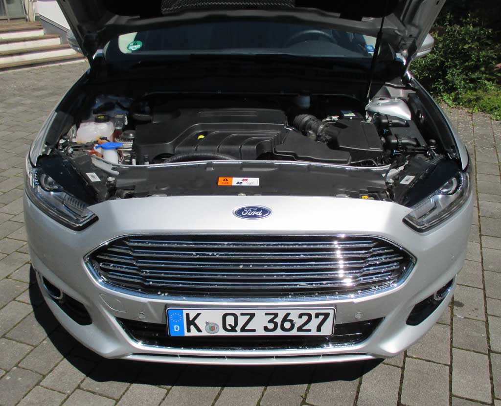 Bei dem getesteten Vierzylinder handelt es sich um einen kultivierten 2,0-Liter mit 180 PS und durchzugsstarken 400 Newtonmetern. Der Selbstzünder macht diesen Ford in der Spitze bis zu 225 Stundenkilometer schnell. Ein gut abgestuftes Sechsgang-Schaltgetriebe überträgt die Kraft auf die Räder. Die in Verbindung mit der spritsparenden Stopp/Start-Funktion zumindest im Datenblatt so angegebenen 4,4 Liter haben wir leider nicht erreicht. Bei uns hat der Bordcomputer nach diesmal meist Stadt- und Mittelstreckenfahrprofilen mit häufigeren Lastwechseln am Ende doch 7,3 Liter angezeigt.