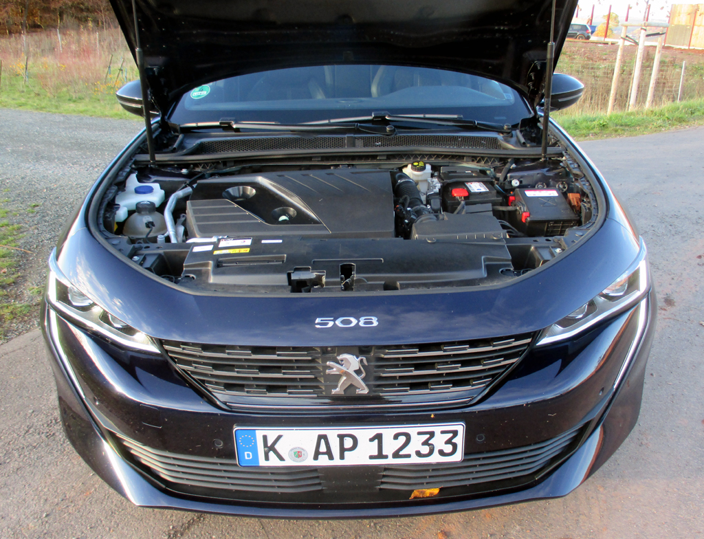 Bei dem getesteten Vierzylinder handelt es sich um einen recht kultivierten 2,0-Liter mit 177 PS und durchzugsstärkeren 400 Newtonmetern ab 2000 Touren. Der schon nach der neuen strengeren Abgasnorm Euro 6d-Temp eingestufte Selbstzünder macht diesen Peugeot in der Spitze sogar bis 235 Stundenkilometer schnell. Eine ganz gut abgestufte, über entsprechende Paddel am Lenkrad auch handschaltbare Achtgang-Automatik überträgt die Kraft auf die Röder. Die in Verbindung damit von den Franzosen zumindest im Datenblatt so angegebenen 4,7 Liter Mixverbrauch haben wir leider nicht erreicht. Im Normalbetrieb hat der Bordcomputer bei uns am Ende nach Stadt-, eher moderaten Landstraßen- und zügigeren Autobahnfahrten 6,2 Liter angezeigt.