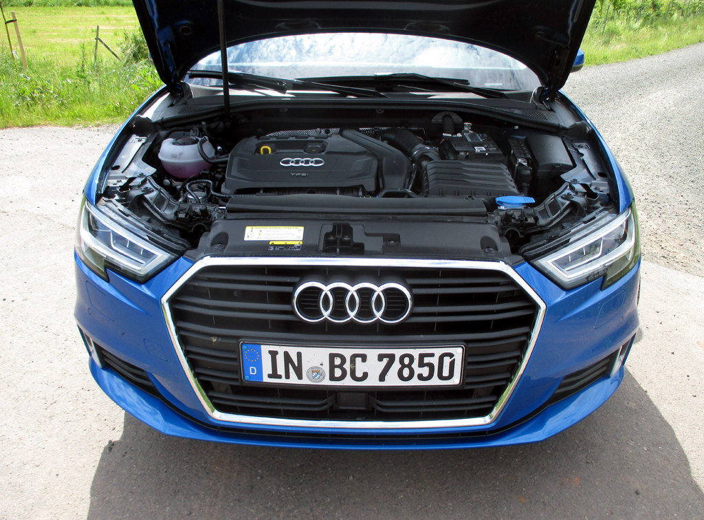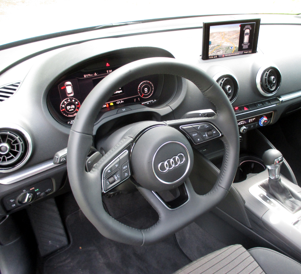 Der lediglich bei höheren Drehzahlen etwas brummigere Turbobenziner schiebt diesen leer 1345 Kilo schweren A3 ganz flott voran, wobei das Fahrwerk einen ausgewogenen Gesamteindruck hinterlassen hat, komfortabel federt und sich dazu noch recht sportlich zeigt. Das Fahrdynamiksystem erlaubt, Änderungen der Fahrzeugcharakteristik etwa durch Anpassung der Lenkunterstützung und Gaspedal- beziehungsweise Schaltkennlinie vorzunehmen. Vorn innenbelüftete Scheibenbremsen und Faustsättel hinten sorgen für standfeste Verzögerung. Eine Reihe von Elektronikhilfen trägt zum Insassenschutz bei. Fast alle zuletzt möglichen Assistenzsysteme sind vorhanden, oft aber nur gegen Aufpreis.