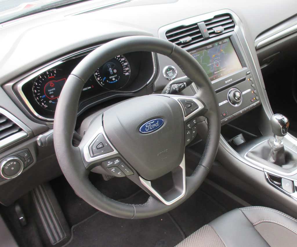 Bei dem getesteten Vierzylinder handelt es sich um einen kultivierten 2,0-Liter mit 180 PS und durchzugsstarken 400 Newtonmetern. Der Selbstzünder macht diesen Ford in der Spitze bis zu 225 Stundenkilometer schnell. Ein gut abgestuftes Sechsgang-Schaltgetriebe überträgt die Kraft auf die Räder. Die in Verbindung mit der spritsparenden Stopp/Start-Funktion jedenfalls im Datenblatt so angegebenen 4,4 Liter haben wir leider nicht erreicht. Bei uns hat der Bordcomputer am Ende bei eher moderater Fahrweise und gemischten Fahrprofilen ohne größere Lastwechsel akzeptable 5,4 Liter angezeigt.