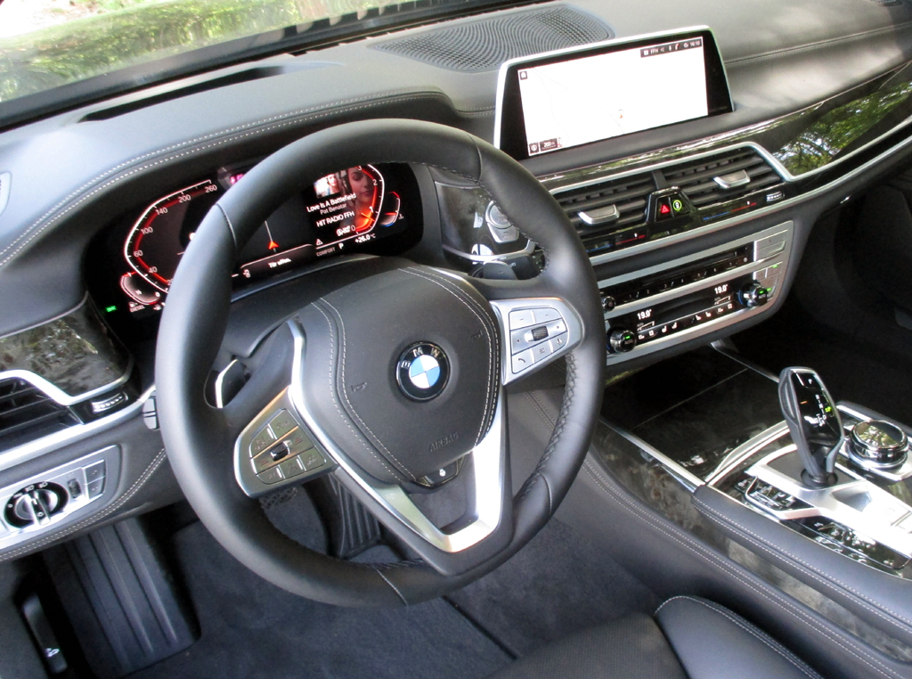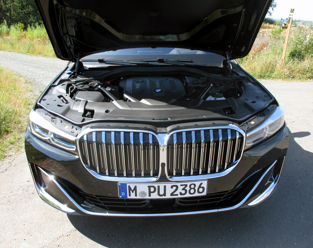 Motor & Umwelt: Bei dem getesteten Sechszylinder handelt es sich um einen kultivierten 3,0 Liter mit 265 PS und wirklich durchzugsstarken 620 Newtonmetern Drehmoment ab 2000 Touren. Der Selbstzünder, der die Abgasnorm Euro-6d-Temp erfüllt, beschleunigt diesen 7er in 5,8 Sekunden aus dem Stand auf Tempo 100, macht ihn in der Spitze 250 Stundenkilometer schnell. Eine sehr gut ab gestufte, über Wippen am Lenkrad auch handschaltbare Achtgang-Sportautomatik überträgt die Kraft auf die Räder. Die in Verbindung mit der Stopp/Start-Spritspartechnik zumindest im Datenblatt so angegebenen maximal 5,6 Liter haben wir leider nicht erreicht. Bei uns hat der Bordcomputer am Ende nach wechselnden Fahrprofilen in verschiedenen Modi für einen Wagen dieses Formats trotzdem immer noch bemerkenswerte 6,2 Liter angezeigt.