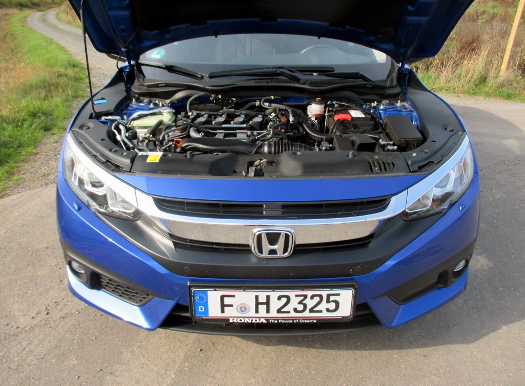 Bei dem getesteten Vierzylinder, der die strengere Abgasnorm Euro-6d-Temp erfüllt, handelt es sich um einen kultivierten 1,5-Liter-Turbobenziner mit 182 PS und 240 Newtonmetern Drehmoment ab 1900 über ein breites Drehzahlband bis 5000 Touren. Er beschleunigt diesen Honda in 8,5 Sekunden aus dem Stand auf Tempo 100, macht ihn in der Spitze 210 Stundenkilometer schnell. Ein ordentlich abgestuftes Sechsgang-Schaltgetriebe überträgt die Kraft auf die vorderen Räder. Die in Verbindung mit der Stopp/Start-Spritspartechnik zumindest im Datenblatt so angegebenen 5,5 Liter Mixverbrauch haben wir im Normalbetrieb leider nicht erreicht. Bei uns hat der Bordcomputer am Ende nach normalen Orts-, etwas spritzigeren Landstraßen- und eher moderateren Autobahnfahrprofilen 6,3 Liter angezeigt.
