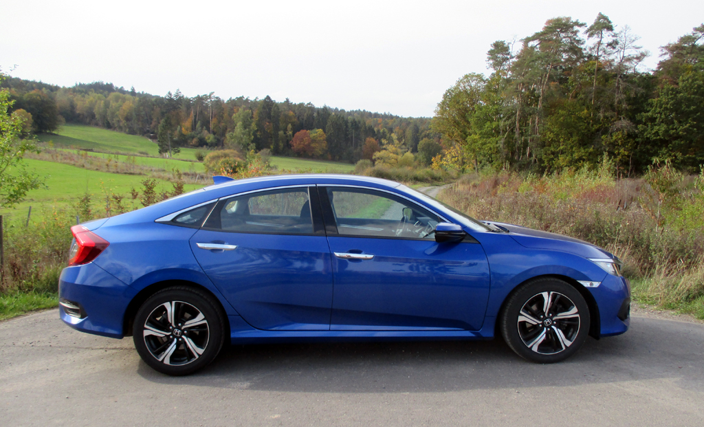 Die aktuelle Civic-Generation stellt bereits die zehnte seit 1973 dar. Sie ist neu entwickelt worden, aerodynamischer, mit kurzem Überhang vorn und markanteren Lufteinlässen, solide verarbeitet und für die untere Mittelklasse standesgemäß anmutend, streckt sich mittlerweile auf 4,64 Metern Länge, baut etwas breiter und flacher. 2,69 Meter Radstand sorgen für ordentlich Platz selbst im Fond. Im Kofferraum lassen sich erweiterbare 519 Liter Gepäck verstauen. Man sitzt niedriger. Die Rundumsicht könnte besser sein. An die Bedienung des Infotainmentsystems muss man sich gewöhnen. Die Limousine ist 2017 neu aufgelegt worden.