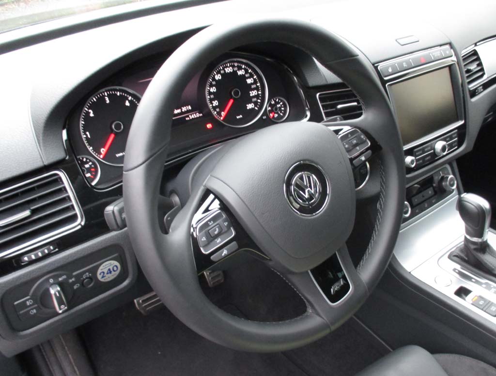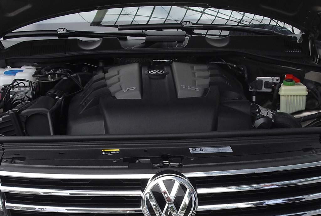 Bei dem getesteten Sechszylinder handelt es sich um einen kultivierten 3,0-Liter mit 262 PS und drehmomentstarken 580 Newtonmetern. Der Selbstzünder macht diesen VW in der Spitze bis zu 220 Stundenkilometer schnell. Eine sehr gut abgestufte Achtgang-Automatik überträgt die Kraft auf die Räder. Die in Verbindung mit der Stopp/Start-Spritsparfunktion angegebenen 6,9 Liter Mixverbrauch haben wir leider nicht erreicht. Bei uns hat der Bordcomputer am Ende nach meist Stadt-, Mittelstrecken- und kurzen Autobahnfahrprofilen mit häufigeren Lastwechseln 9,2 Liter angezeigt.