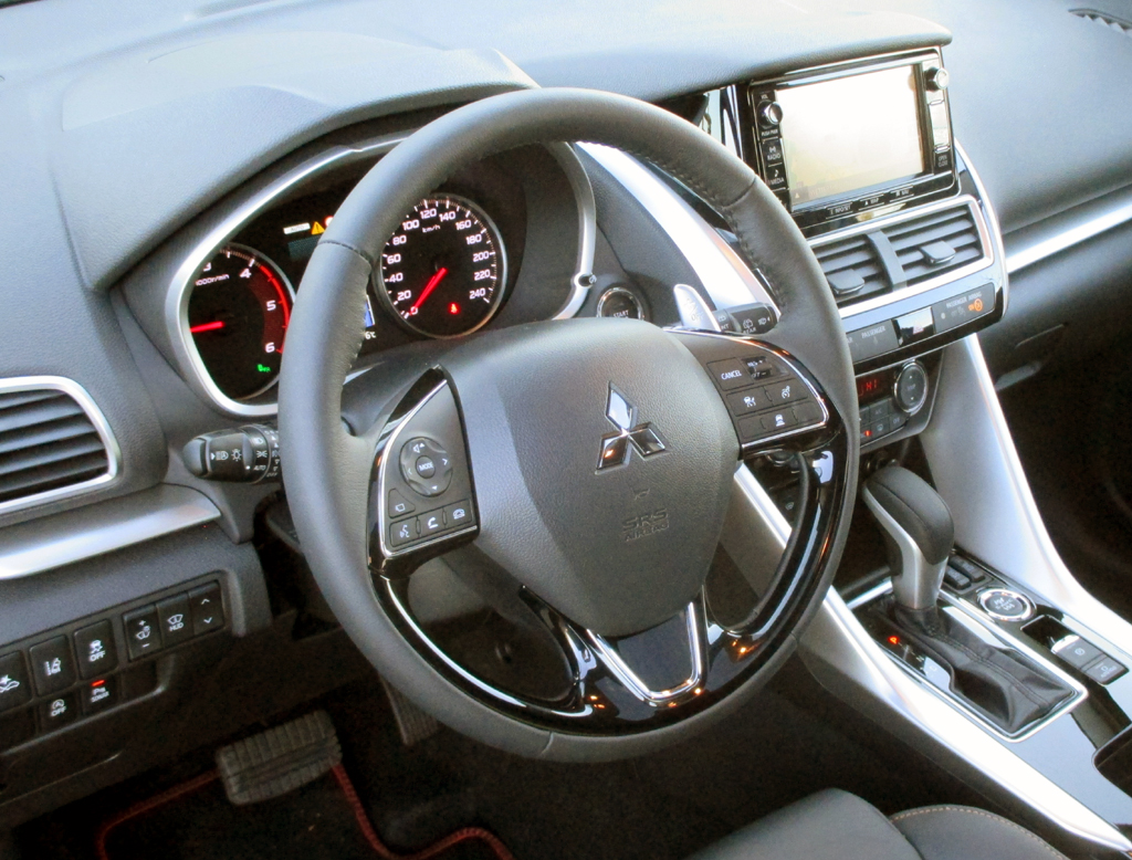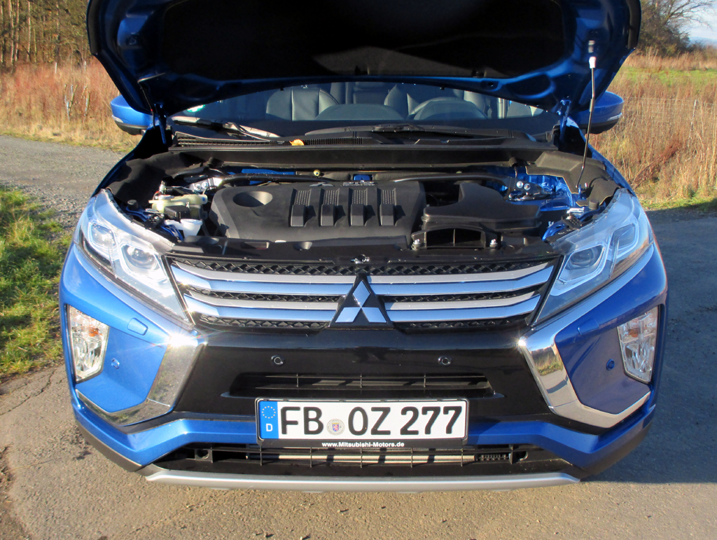 Der Turbodiesel schiebt den leer doch bis zu 1815 Kilo schweren Eclipse Cross beim Tritt aufs Gaspedal etwas flotter voran. Der aus dem größeren Outlander stammende Diesel in Kombination mit der Wandlerautomatik passt besser zu diesem Modell als der 1,5-Liter-Turbobenziner mit stufenlosem CVT-Getriebe. Das sicher abgestimmte Fahrwerk federt ausreichend komfortabel. Der Permanentallrad ist mit Fahrdynamikregelung verbunden. Ein Eco-Modus ist vorhanden. Die Servolenkung, elektrounterstützt und geschwindigkeitsabhängig, könnte direktere Rückmeldung geben. Die Scheibenbremsen, vorn innenbelüftet, packen standfest zu. Auffahrwarnung, Notbrems-, Spurhalte-, Totwinkelassistenz, Fußgänger-, Verkehrszeichenerkennung, Rückfahrkamera, 360-Grad-Umfeldbeobachtung und Adaptivtempomat samt Begrenzer tragen in der Spitzenvariante bereits zum hohen Standard-Insassenschutzniveau bei.