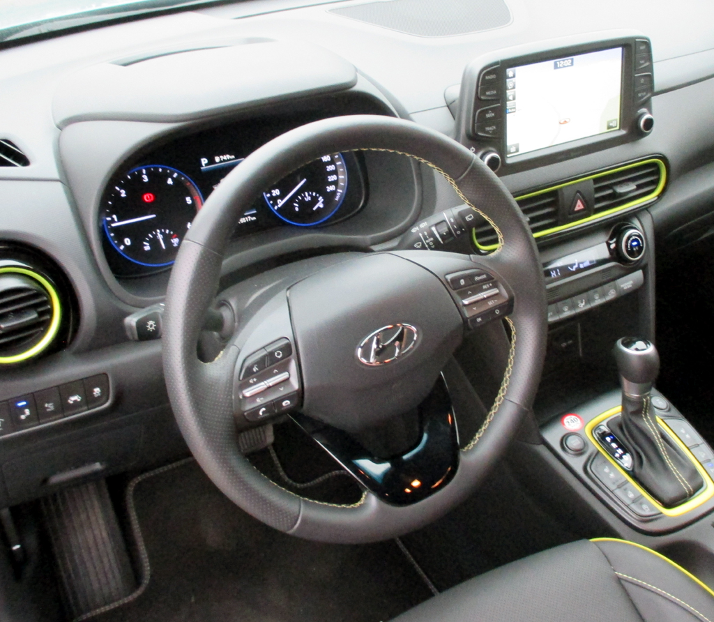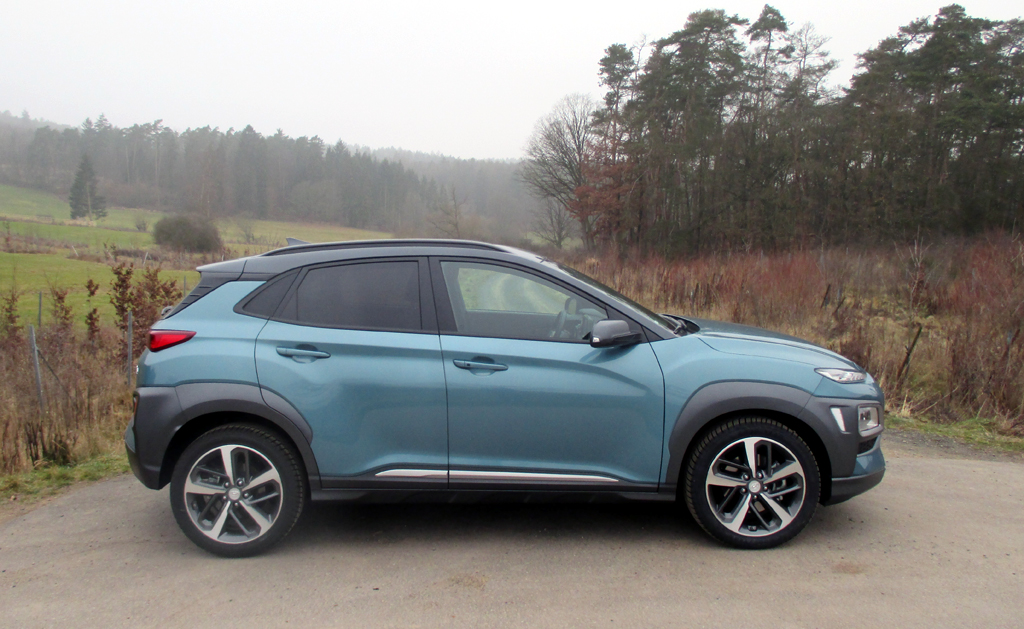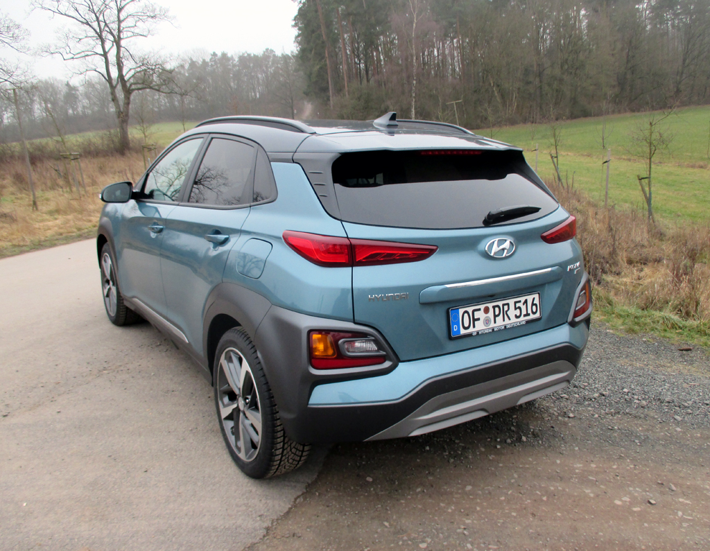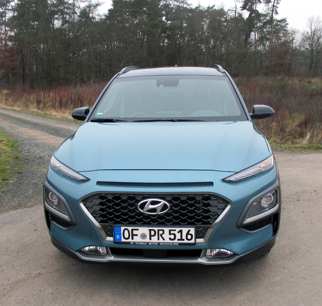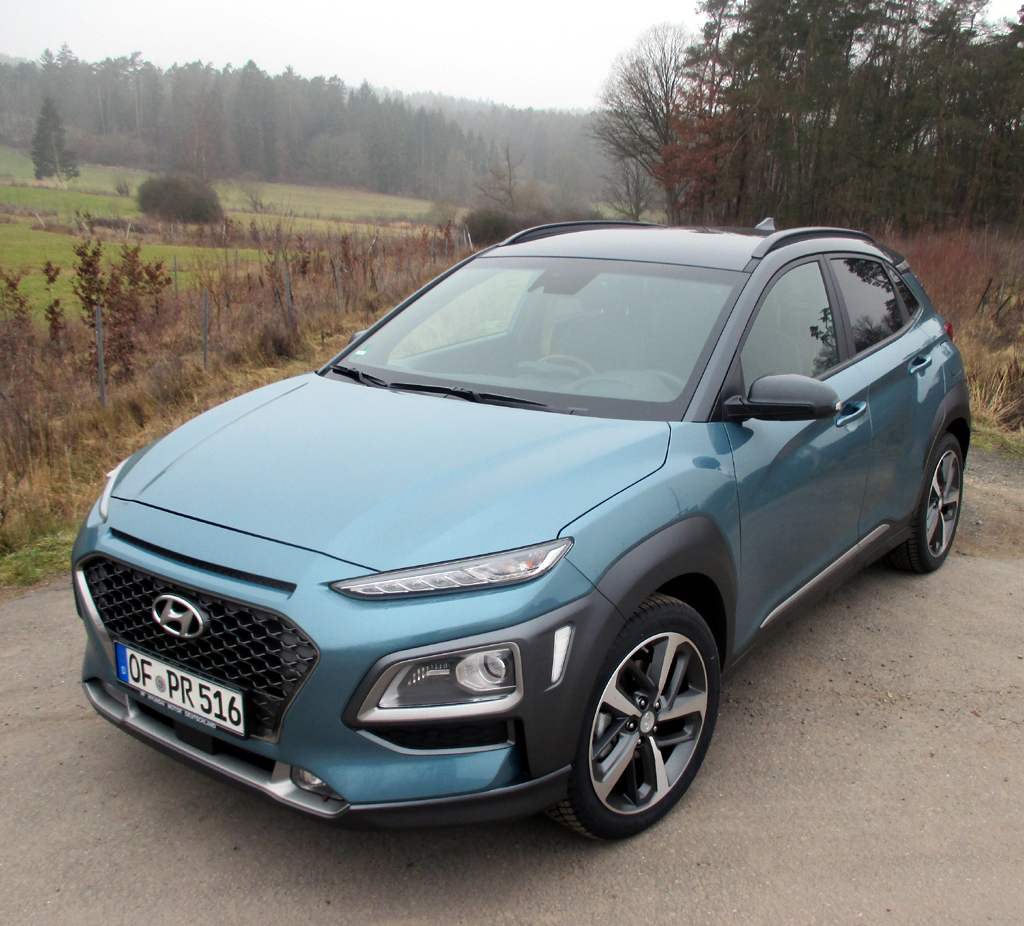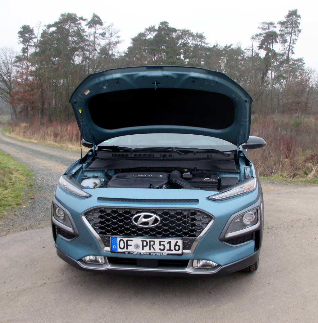 Der nach einem Distrikt im Westen von Hawaii benannte Kona, solide verarbeitet, für seine Klasse, was die Qualität betrifft, standesgemäß anmutend, 4,16 Meter lang, Radstand 2,60 Meter, Kofferraum 361 bis 1143 Liter, für fünf Personen ausgelegt, kommt mit robuster Optik in Form markanter Beplankungen etwa über den Radhäusern sowie hinten eines angedeuteten Unterfahrschutzes daher. Individualität scheint Trumpf, etwa was die spezielle Front mit den Scheinwerfer-Schlitzen, erstmals die Zweifarblackierung, das wahlweise schwarze oder dunkelgraue Dach, die knalligen Bunttöne außen und die verschiedenen Farbdekors innen betrifft. Platz ist für ein Auto dieser Größe selbst hinten mit Blick auf die Kopffreiheit noch ganz ordentlich vorhanden. Die Bedienung im sehr übersichtlich gestalteten Cockpit ist rasch im Griff.