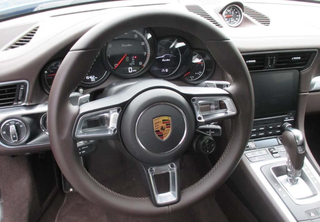 Der Biturbo schiebt das leer 1595 Kilo schwere 2+2-Sportcoupé beim Tritt aufs Gaspedal vehement voran. In der Grundauslegung übertreibt es dieser 911 mit der Härte nicht. Im Sportmodus lassen sich Motor, Getriebe und das Fahrwerk mit der elektronisch geregelten Quersperre hinten, die die Momente variabel verteilt, jedoch nachschärfen. Die elektronische Dämpferverstellung ist Standard. Der Allrad erhöht mit der Traktion die Stabilität beim Fahren. Die elektromechanische Servolenkung gibt präzise Rückmeldung, trägt im Verbund mit der Hinterachslenkung zu noch größerer Agilität und Handlichkeit bei. Die vorn und hinten innenbelüfteten Festsattelscheibenbremsen packen standfest zu. Schon im Basispaket ist das Sicherheitsniveau hoch.