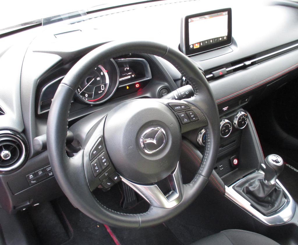 Bei der getesteter Vierzylinder-Spitzenversion handelt es sich um einen recht kultivierten 1,5-Liter mit 105 PS und kräftigeren 220 Newtonmetern schon früh ab 1400 und dann über ein relativ breites Drehzahlband bis 3200 Touren. Der Selbstzünder macht diesen Mazda in der Spitze bis Tempo 178 schnell. Ein gut abgestuftes Sechsgang-Schaltgetriebe überträgt die Kraft auf die Räder. Die in Verbindung mit der spritsparenden Stopp/Start-Automatik zumindest im Datenblatt so angegebenen nur 3,4 Liter haben wir leider nicht erreicht. Bei uns hat der Bordcomputer am Ende nach meist Stadt-, Landstraßen- und eher moderaten Autobahnfahrprofilen 4,6 Liter angezeigt.