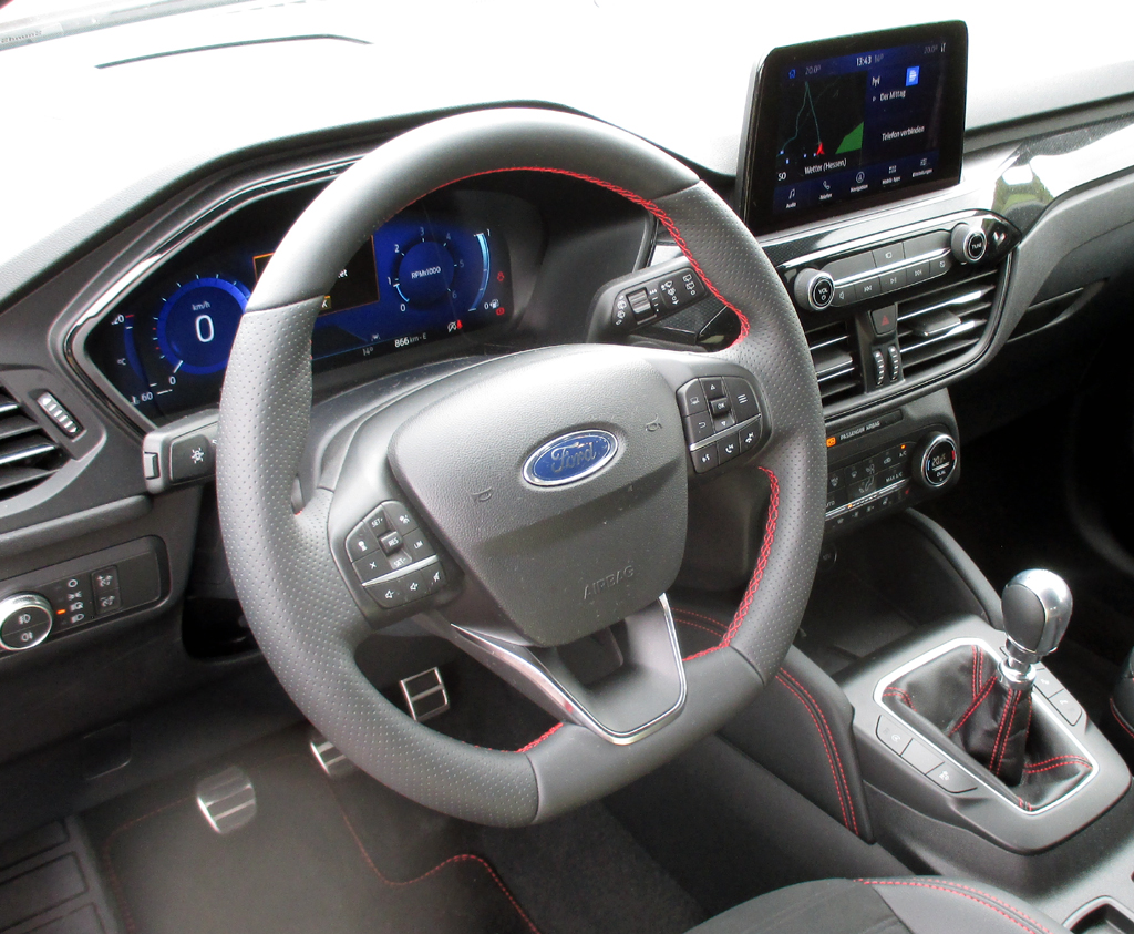 Bei dem getesteten Vierzylinder handelt es sich um einen recht kultivierten 2,0-Liter mit 150 PS und durchzugsstärkeren 370 Newtonmetern Drehmoment ab 2000 Touren. Der nach der strengeren Abgasnorm Euro-6d-Temp freigegebene Selbstzünder beschleunigt diesen Ford in 9,6 Sekunden aus dem Stand auf Tempo 100, macht ihn in der Spitze 194 Stundenkilometer schnell. Ein ganz gut abgestuftes Sechsgang-Schaltgetriebe überträgt die Kraft auf die vorderen Räder. Den in Verbindung mit der spritsparenden Stopp/Start-Funktion zumindest im Datenblatt so angegebenen Mixverbrauch von maximal 4,4 Litern, ermittelt nach dem realistischeren Messverfahren WLTP, haben wir im Normalbetrieb leider nicht erreicht. Bei uns hat der Bordcomputer am Ende nach normalen Orts-, spitzigeren Landstraßen- und flotteren Autobahnfahrprofilen immer noch akzeptable 5,1 angezeigt.