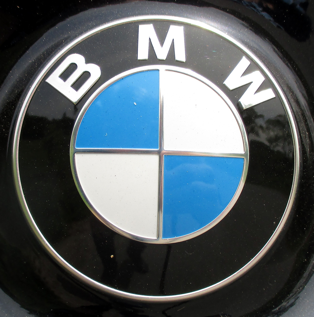 Blick auf die Frontpartie mit dem Markenlogo vorn über dem Doppelnieren-Kühlergrill.