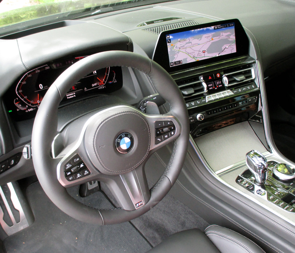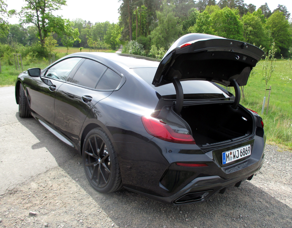 Das gestrecktere Gran Coupé, gegenüber dem normalen Coupé mit zwei zusätzlichen Türen, gibt es erst seit 2019. Es kommt auf 5,08 Metern Länge sauber verarbeitet daher, mutet sehr wertig an. Platz ist bei 3,02 Metern Radstand selbst im Fond des nur 1,40 Metern flachen 4+1-Sitzers noch ganz ordentlich vorhanden. Das Gepäckabteil mit Durchladefunktion bei getrennt teilbarer Rücklehne hinter der größeren Heckklappe fasst 440 Liter. Das in M-Sportpaket-Ausführung serienmäßige Aerodynamikpaket setzt sich aus Komponenten in Wagenfarbe zusammen, besteht aus speziellen Stoßfänger-Verkleidungen und Seitenschwellern. Im modernen Cockpit geht es gewohnt sportlich-funktionell zu. Nach kurzer Eingewöhnung findet man sich rasch zurecht. Die Sicht nach hinten bleibt bei Autos dieser Art etwas eingeschränkt.