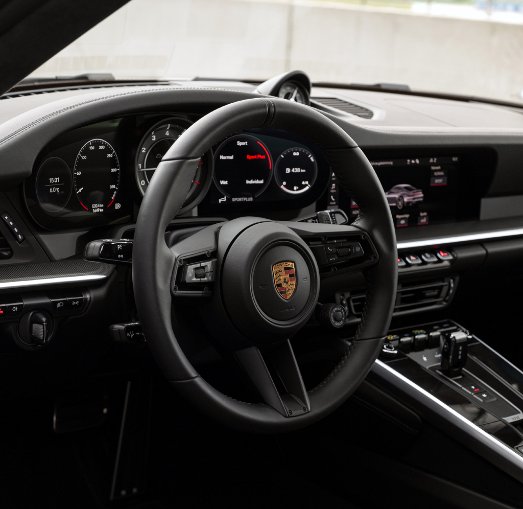 Der 911 ist zweifellos der bekannteste Porsche, gilt deshalb auch als Inbegriff der Marke. Unter dieser Bezeichnung haben ihn die Zuffenhausener erstmals 1963 als Nachfolger des legendären 356 vorgestellt. Über all die Jahrzehnte hinweg geblieben ist, dass es sich, egal ob Coupé oder Cabrio, dabei um einen typischen 2+2-Sitzer, eben mit zwei Notsitzen hinten, handelt. Mittlerweile, seit 2020, ist die siebte Turbo-Generation am Start, 4,53 Meter lang, Radstand 2,45 Meter, Kofferraum vorn 128, Stauvolumen hinten bei umgeklappten Rücksitzen 264 Liter. Der Nachfolger hat im Vergleich zum Vorgänger nochmal deutlicher zugelegt. Mit der Karosserie ist auch die Spur breiter geworden. Der Innenraum lehnt sich an den des normalen Carrera an, wirkt etwa vom Bicolorleder über Karbondekor bis zu den gesteppten Sitzen wie im ersten Turbo nur edler. Bedienungsmäßig findet man sich im sportlich-funktionellen Cockpit rasch zurecht.