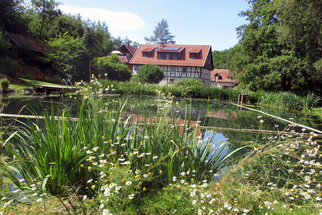 Gleich hinter dem Landhaus schließen sich Naturgarten und Naturbadeteich an. Fotos: Koch