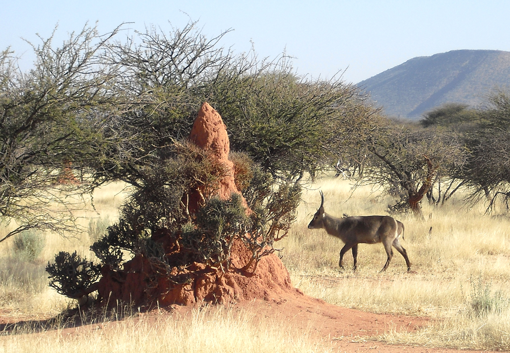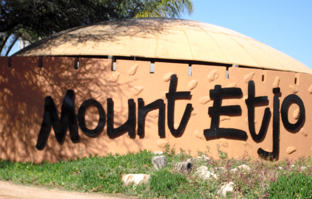 Wir sind etwa 230 Kilometer nördlich von Windhoek, der Hauptstadt Namibias. Würden wir links am Waterberg-Plateau einfach geradeaus weiter fahren, stießen wir hinter Outjo direkt auf die Etosha-Pfanne. Aber uns ist die Lodge zu Füßen des über 2000 Meter hohen Mount Etjo empfohlen worden, der den Herero als mythischer (Schutz-)Berg gilt.
