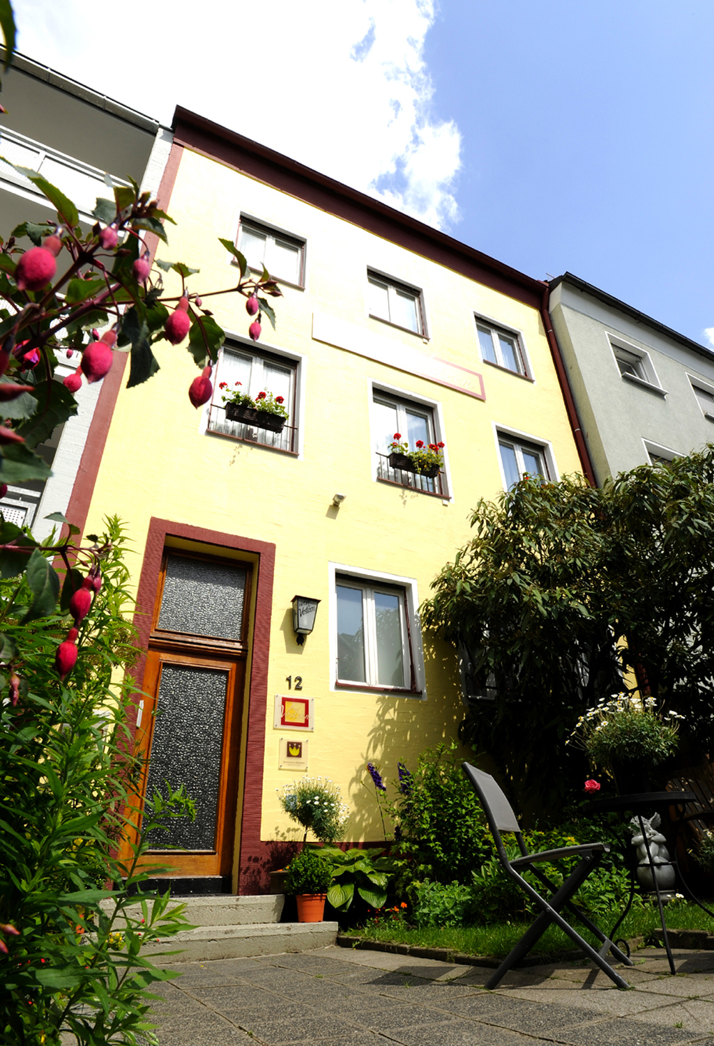 Im kleinen Garten hinter dem Designhotel Vosteen in Nürnberg. Foto: Vosteen