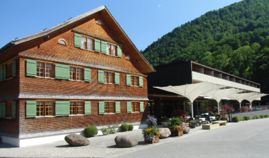 Hotel/Lage: Das Vier-Sterne-Superior-Haus findet sich in einer Gegend, die an Deutschland, die Bodenseeregion, ans Kleinwalsertal, das Arlberggebiet und das Große Walsertal grenzt, bei Gourmets vor allem durch die Käsestraße bekannt ist, die auf einem Zusammenschluss von Wirten, Handwerkern und Betrieben beruht, die sich traditioneller Käseproduktion widmen. Mit ihrem Mann Eugen hat Margret Bischofberger 1946 den Gasthof Sonne in der heute 1300 Einwohner zählenden Gemeinde Mellau übernommen, ihn 1950 erstmals ausgebaut, zwischen 1954 und 1958 Saal, Restaurant und ein Haus mit 30 Standardbetten hinzugefügt, ehe 1977 der Neubau und 1985 ein weiterer Umbau die Kapazität erweitert und den Qualitätsstandard gehoben hat. 2008 ist das alte Gasthaus abgetragen und neu errichtet worden. „In bewusster Distanz“ schließt sich das durch einen Gang mit dem Gasthaus verbundene Hotel an, das Bischofsberger-Enkelin Natalie Läßer mit ihrem Mann Michael seit 2014 in zentraler Lage nahe der Bregenzer Ache leitet.
