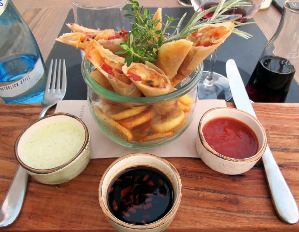 Küche/Keller: Zum hauseigenen Deli mit Kamin gehören Bistro- und Restaurantbereich samt Bar und Terrasse, Kochtisch und Bauernladen mit Produkten aus dem Haus sowie von Anbietern aus der Umgebung. In der Küche Vorbereitetes kann bestellt und dann in der Suite oder im Appartement fertig gekocht werden. Klassische Speisekarten gibt es nicht. Rollende Tafeln weisen auf zwar wenige, dafür aber schnell wechselnde Gerichte von Hausmannskost über Tiroler Spezialitäten bis zu regionaler Spitzenküche hin. Chefköchin Ela Michonska ist der kreative Kopf, der hinter alldem steckt, nicht nur was neue Gerichte mit regionalem Touch oder hausgemachte Limonaden etwa mit Kräutern aus dem Kaiserlodge-Garten, sondern auch was ihre sogar markenrechtlich geschützten Frühlingsrollen-Tirolls mit verschiedenen Füllungen betrifft. Tirol ist kein Weinanbaugebiet, trotzdem oder vielleicht gerade deshalb setzt Michael Landlinger, im Kaiserlodge-Deli mit zuständig auch dafür, vor allem auf Weine aus Österreich – oder versucht sich gleich selbst am Kreieren neuer Drinks.