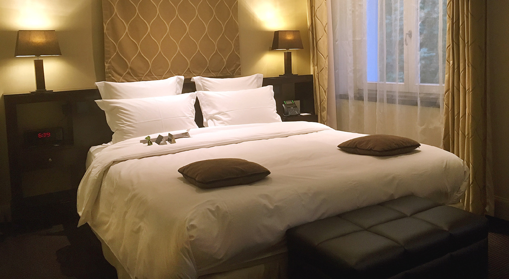 Unterbringung/Flair: Das Hotel verfügt über 17 geschmackvoll arrangierte Komfort-, Deluxe-Zimmer sowie Junior-Suiten und Präsidenten-Suite. Die stilvolle Einrichtung in warmen Beige- und Brauntönen vermittelt ein behaglich-hochwertiges Ambiente sogar in weitgehend familiärer Atmosphäre. Möbel, Beleuchtung und ausgesuchte Gegenstände passen sehr gut zusammen. Zur modernen Ausstattung gehören etwa Fußbodenheizung, LCD-Fernseher und Soundsystem. Die verschiedenen Services reichen bis zur Busvermittlung und zum 24-Stunden-Business-Center. Ebenfalls Konferenzen und ähnliche Veranstaltungen sind möglich.